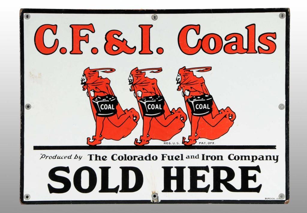 Description 1920s to 1930s. Outstanding graphics with three devils running. Stress area with chips to bottom center and overall wear. Hard-to-find sign in this size. Condition (7.5, Very Good). Size 16" x 22".