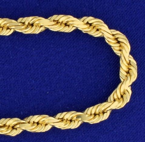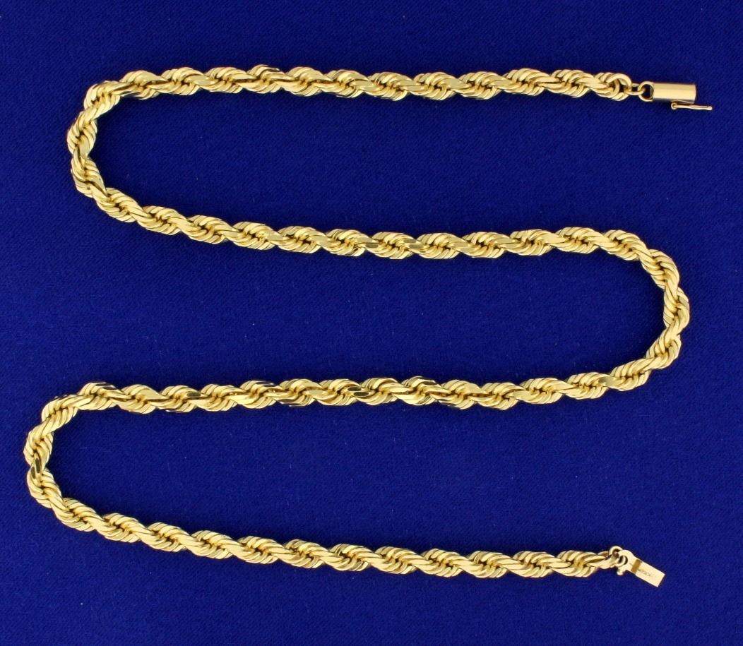 In 14k yellow gold. 20 1/4 Inch long with 4.85mm thick with safety clasp. 52.3g.