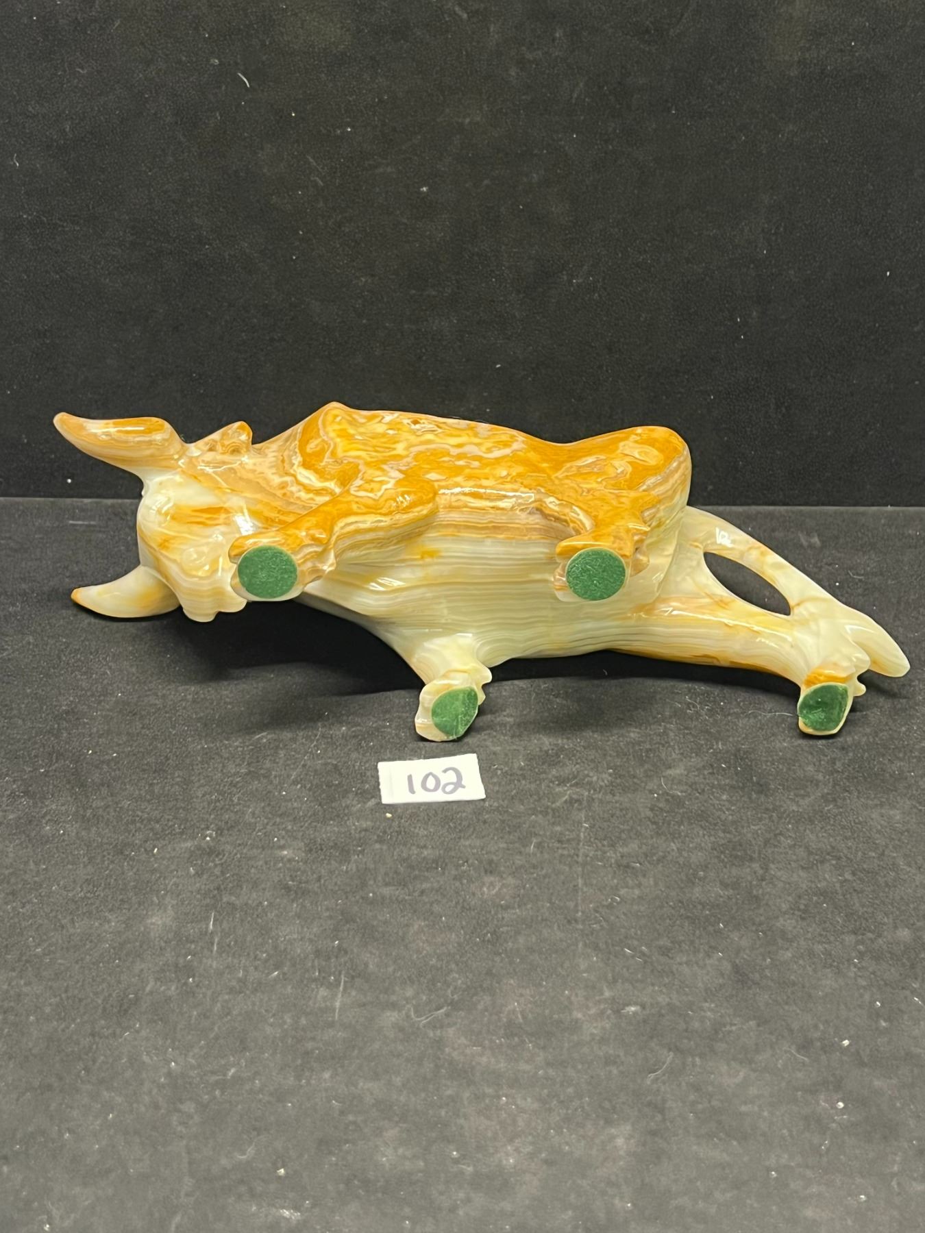 Heavy Stone Onyx? Bull Sculpture Approx: 9.5"W 4.5"T