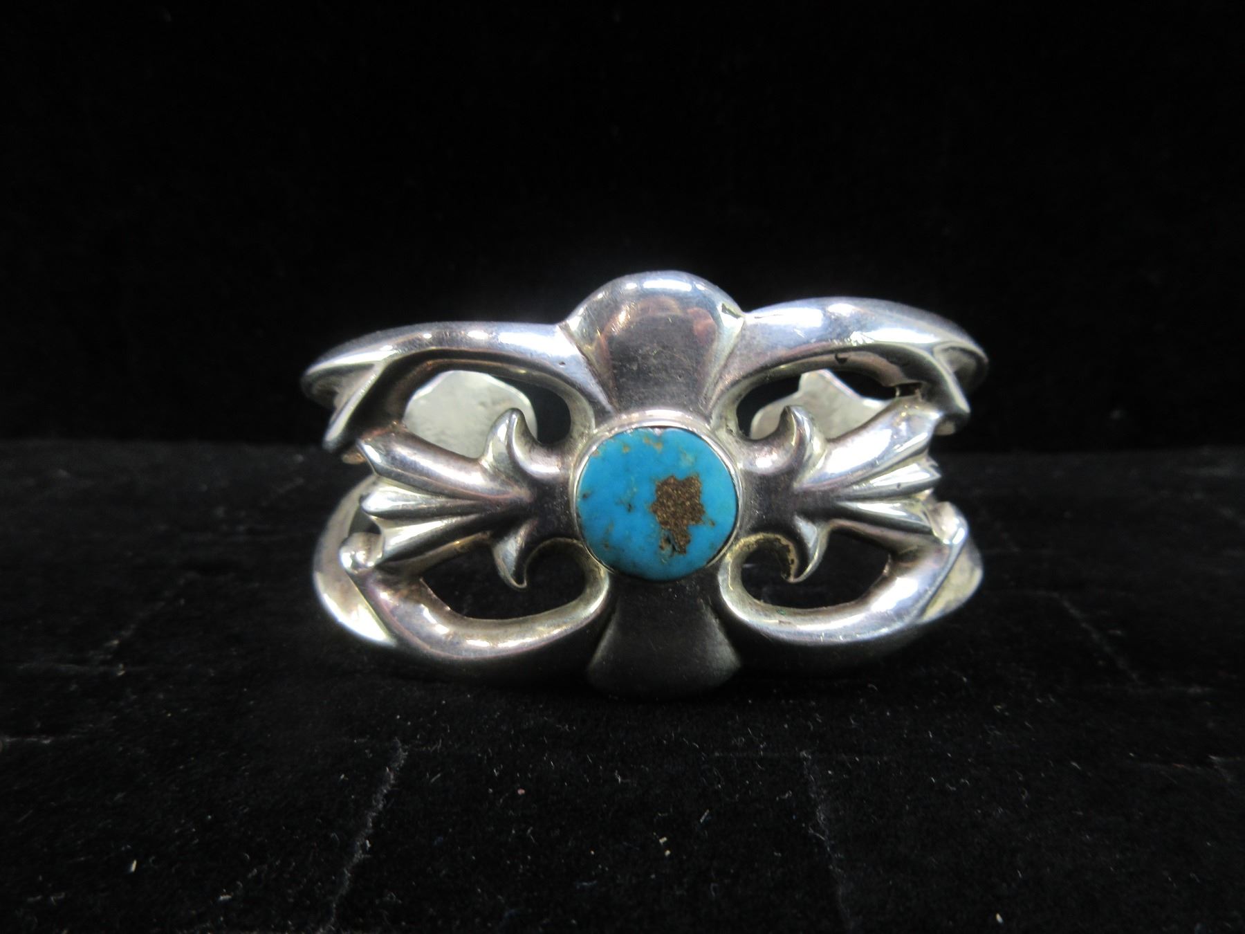 Heavy Unmarked Sterling And Turqouise Bracelet