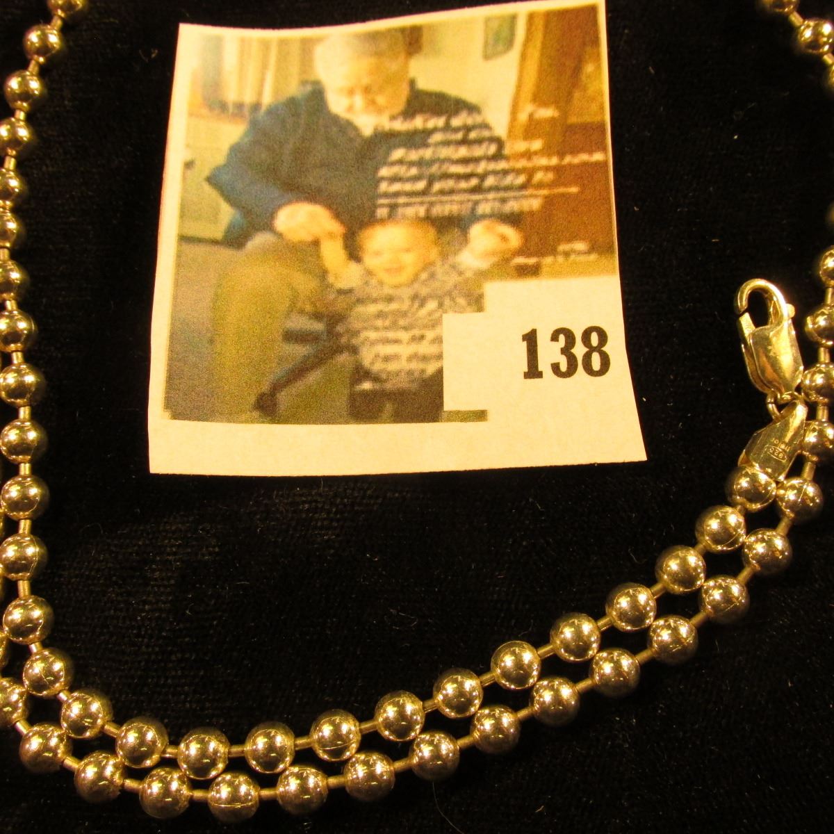 Heavy bead sink stopper style sterling necklace, marked 925 milor, 20 when closed, 29.6 g / 19.0 dwt