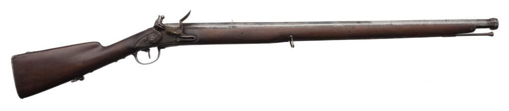 Heavy flintlock long gun signed “A. Fortschav” on lock plate, approximately .85 caliber, 34” octagon barrel with ringed cannon-type muzzle; probably for wall or rampart use; overall fair to good condition. Est.: $800-$1,600.