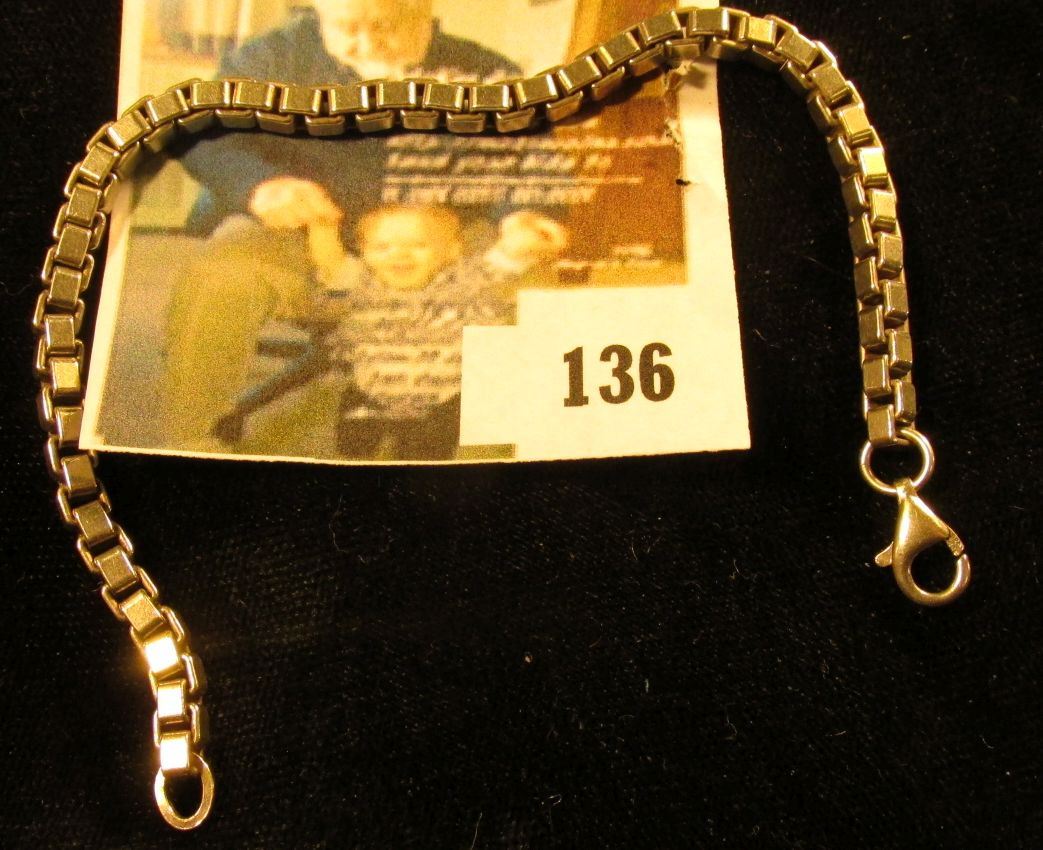 Heavy, large box link bracelet, sterling, marked 925, 7 long closed, 15 g / 9.6 dwt