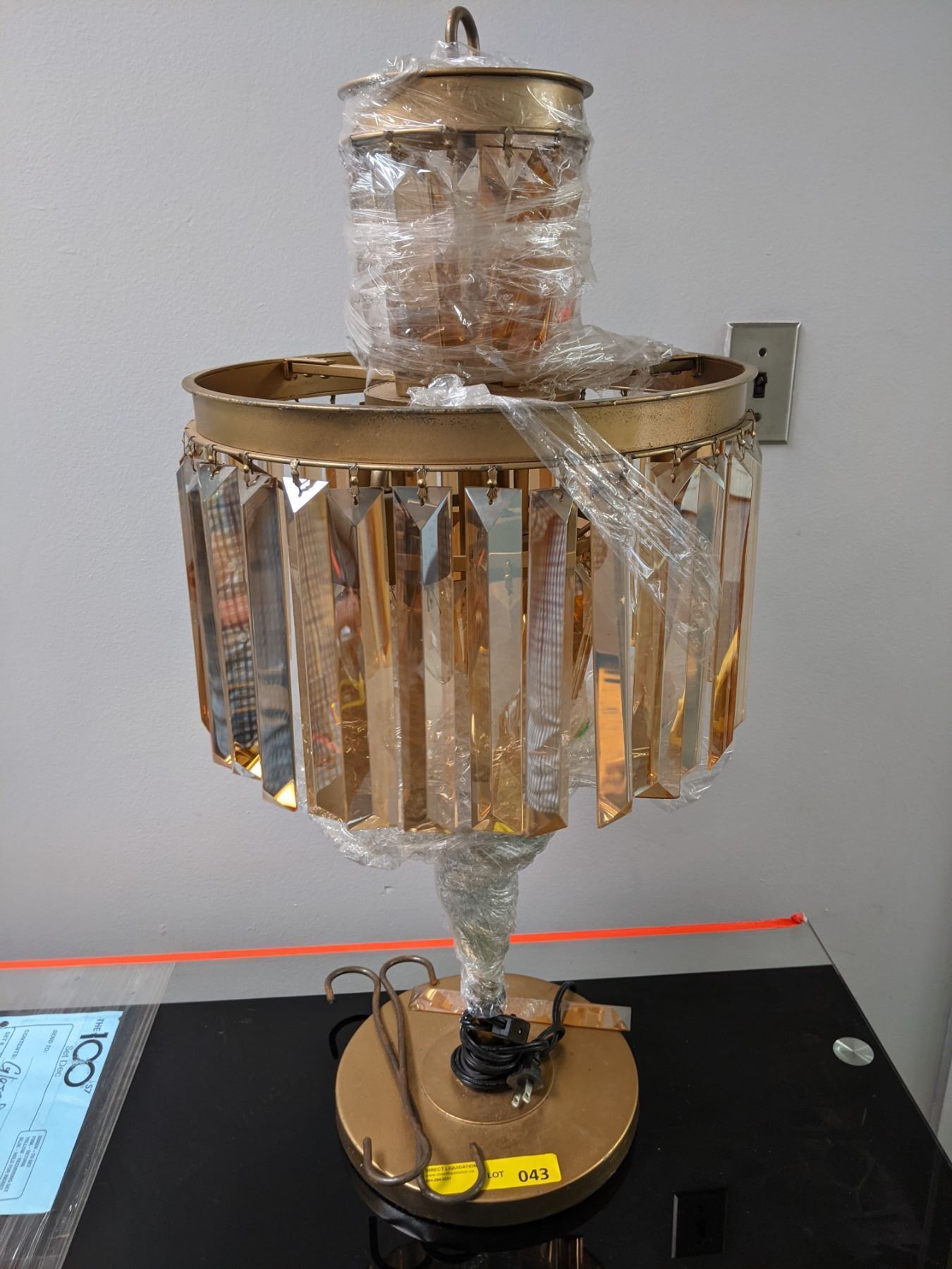 Heavy metal table lamp w/ amber glass prisms from the popular sci-fi tv series