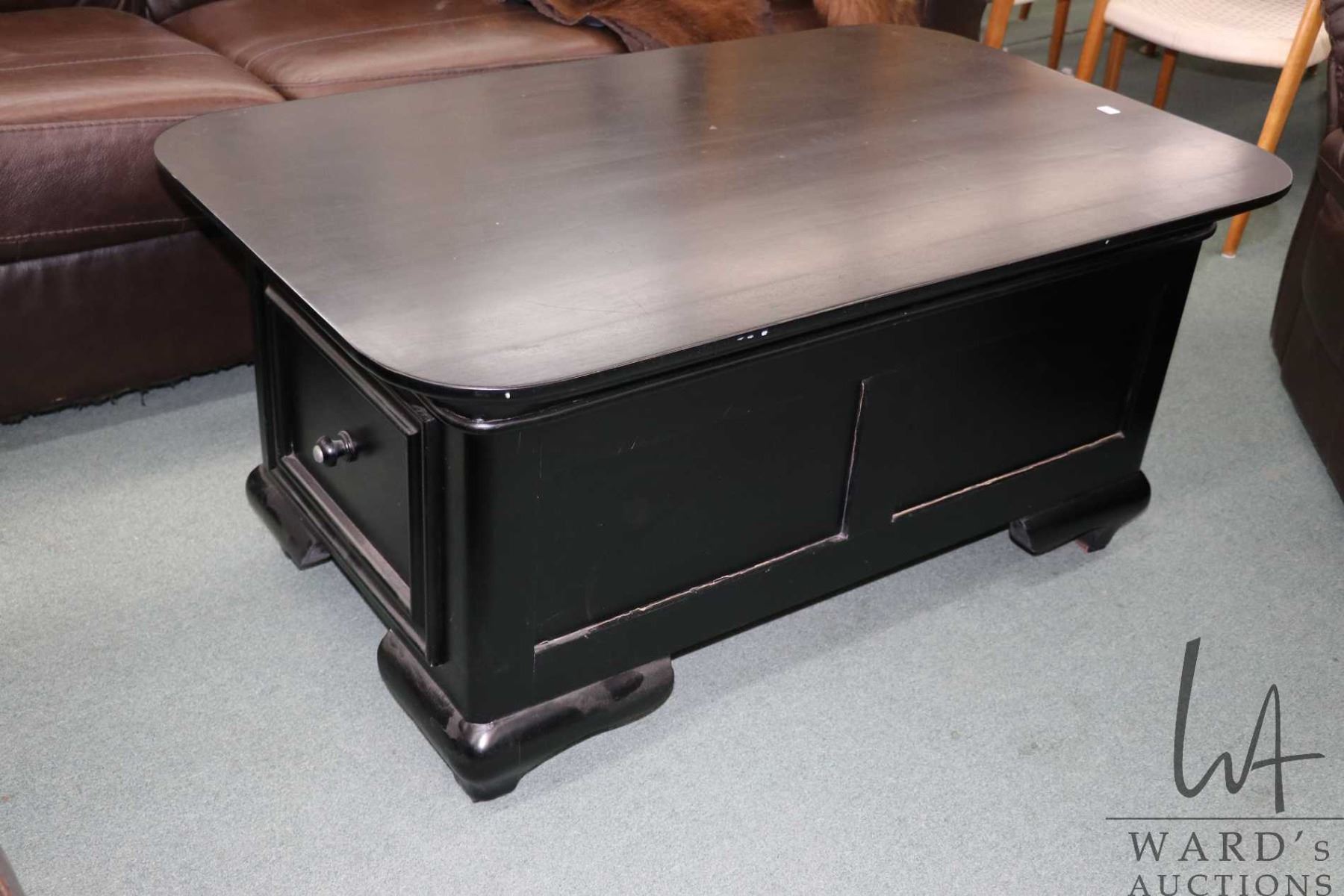 Heavy modern coffee table with drawer on each end 22" H X 48" X 30"