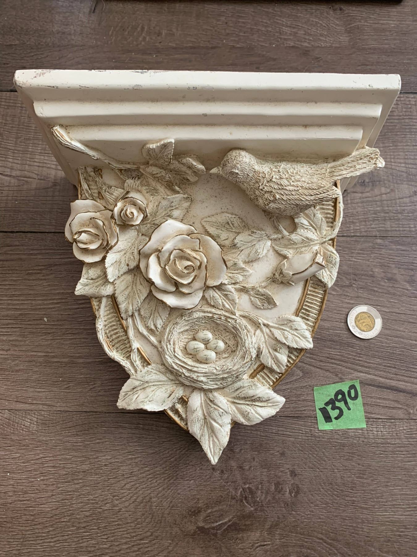 Heavy resin shelf with birds and roses 10x5.5x10.5