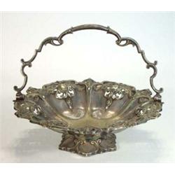 Heavy silver plated pierced basket with swing handle, marks to base, 34cm diameter