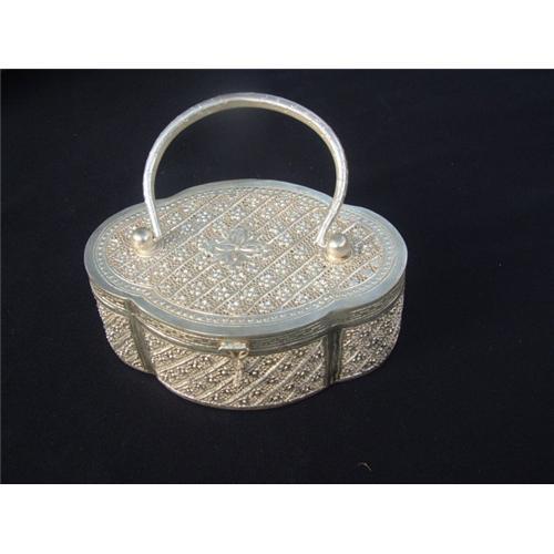 20th. century Vietnamese heavy silver purse with intricate, reticulated decorations. Length: 7.1" (18 cm.). Width: 4.8" (12 cm.). Height: 2.8" (7 cm.).
