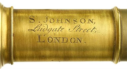 Heavy-weight Reflecting Aclescope (3 in.) "S. Johnson, London", c. 1770 S. Johnson, Ludgate Street, London. Brass, polished and lacquered.<Br>