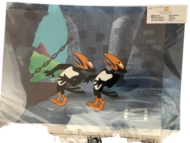 Heckle & Jeckle one of a kind animation production cel and production drawing with COA.