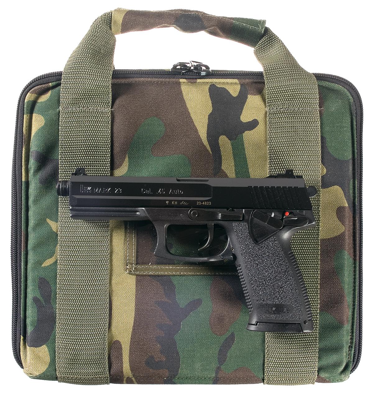 This pistol was introduced in 1996 with a limited availability of about 2,000. This pistol is very similar to the U.S. Government contract pistol developed for Special Operations Units. The pistol has a polymer frame and steel slide. The pistol is equipped with three-dot fixed sights, serrated hammer and trigger, squared trigger guard, ambidextrous magazine release and safety, 10 round double stack magazine, and textured grip with checkered grip straps. The bottom of the frame is grooved on each side for accessories and the barrel is threaded for a noise suppressor. Complete with green camouflaged soft nylon case with extra magazine.