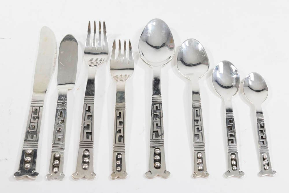 Modern. Mexico 925. Service for 12. Knives, butter, forks, salad forks, 12 soups, and 24 teaspoons. 84 pieces total. Approx. 159.50 ozt, 4961g