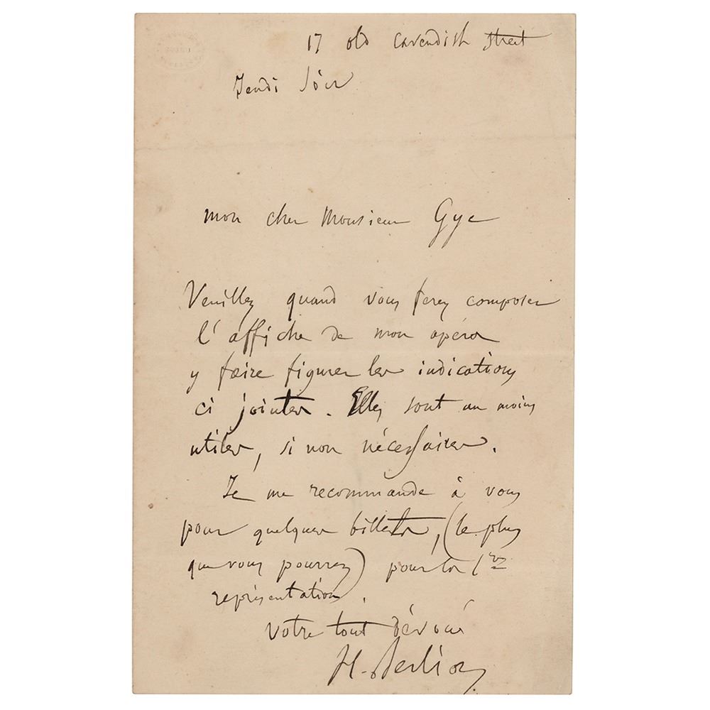 ALS in French, signed “H. Berlioz,†one page, 4.5 x 6.75, no date. Untranslated handwritten letter by Berlioz. In fine condition, with some light creasing.