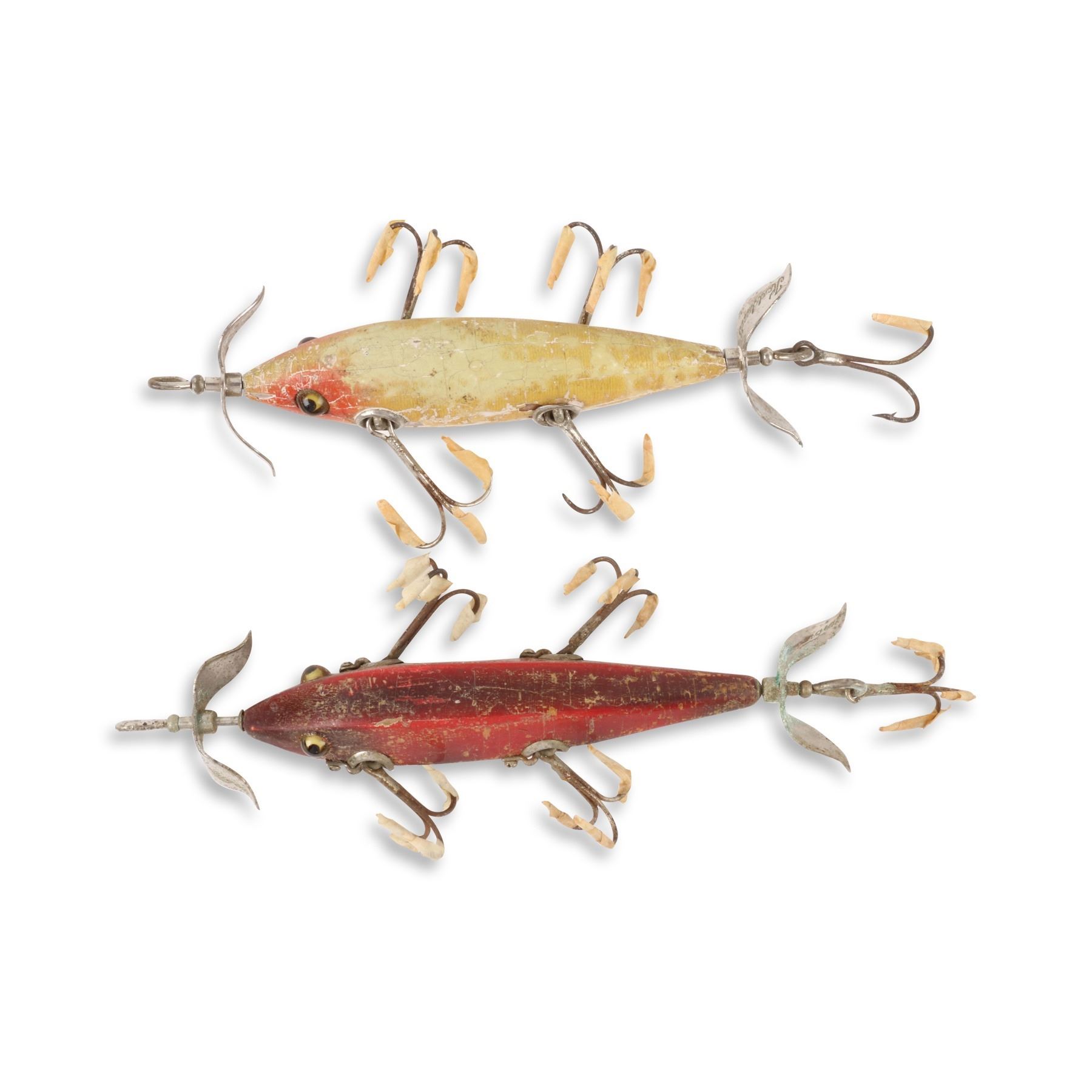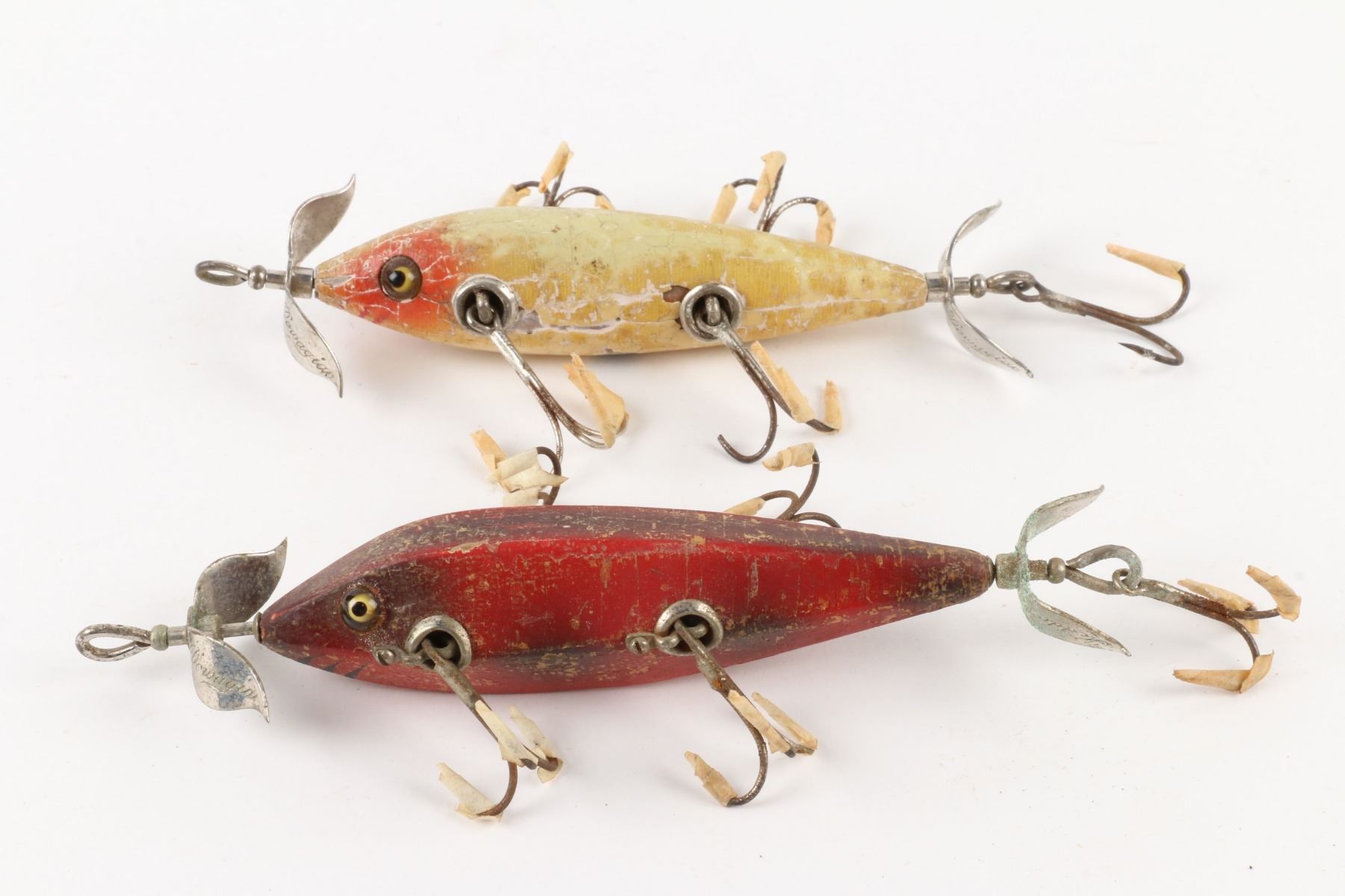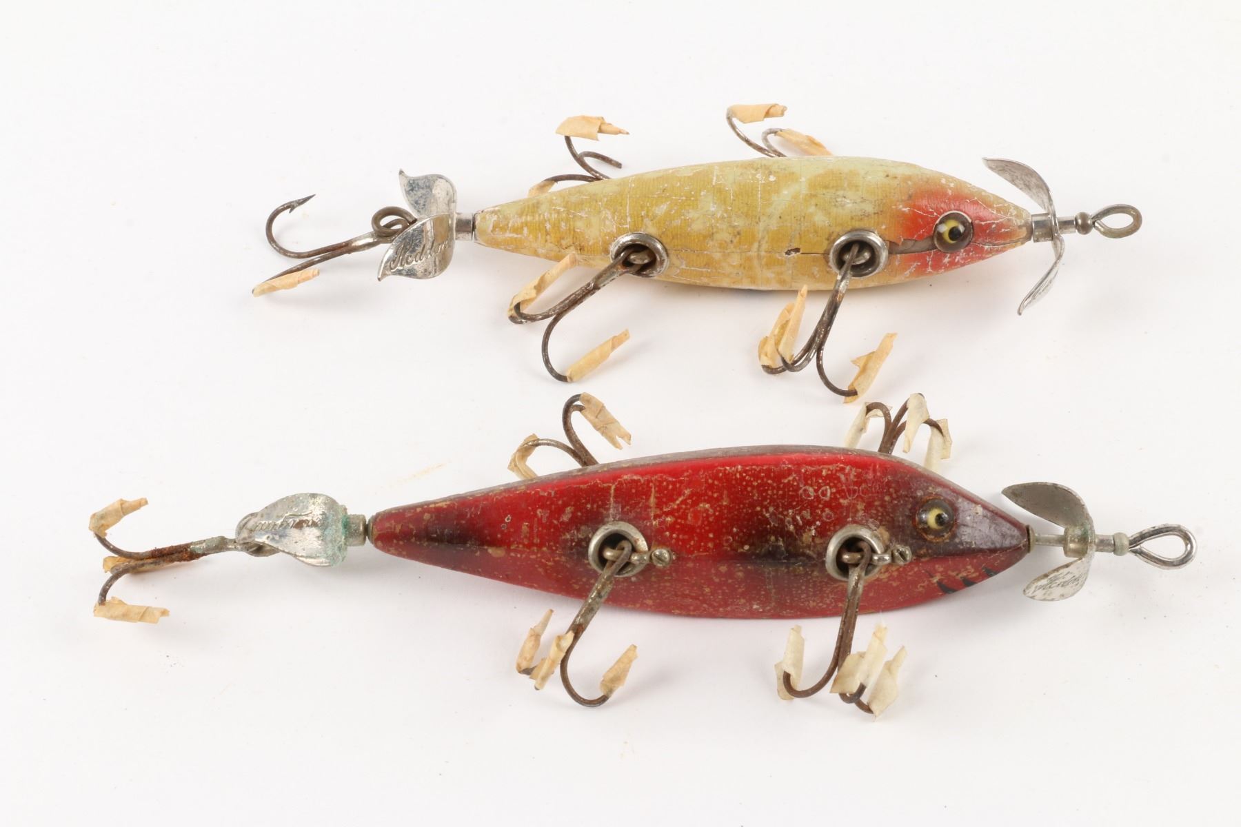 Heddon, United States. 1910s. Material: Wood. Quantity: 2. Grade: G. 4" each. Est. $100-125.