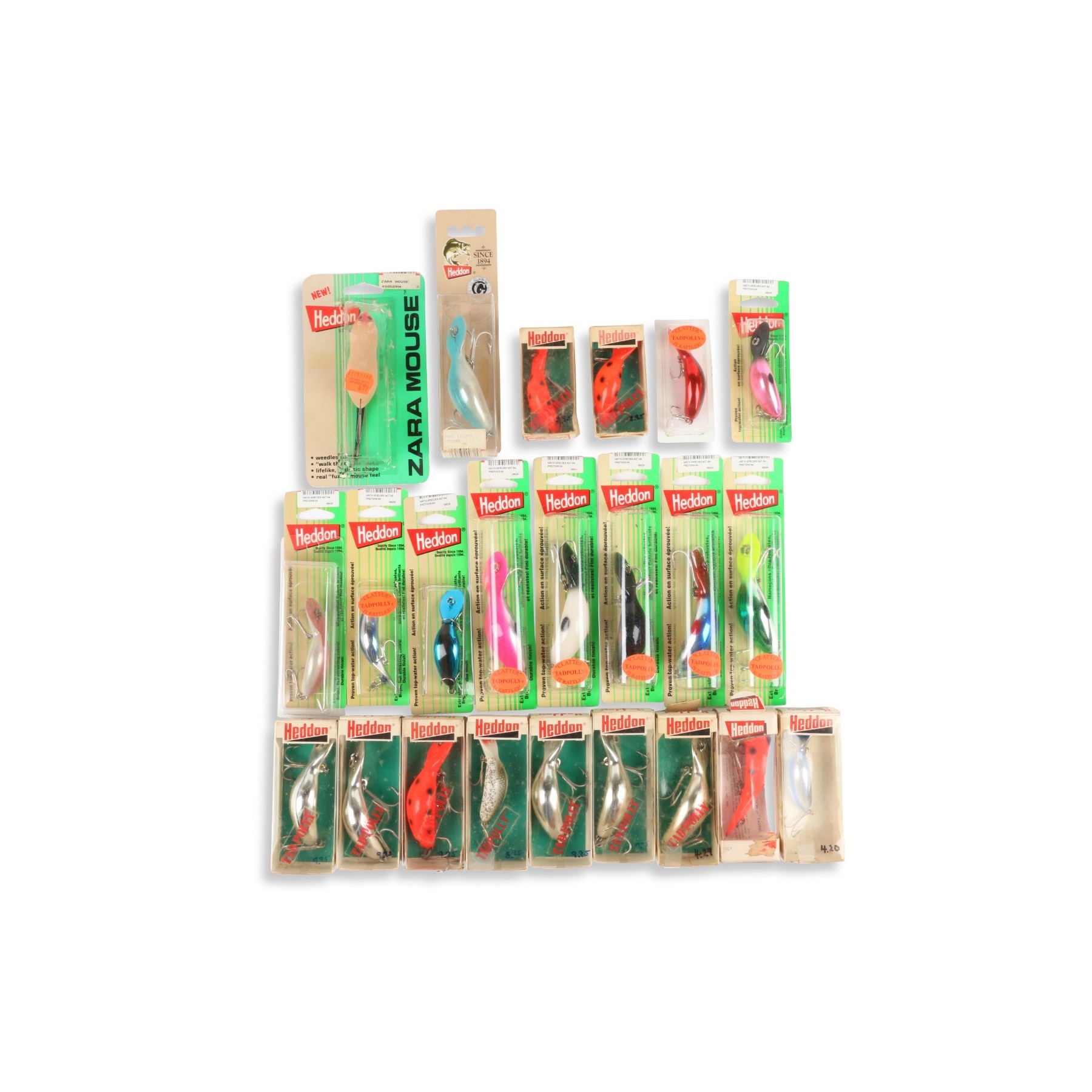 Heddon, United States. Packaged. Material: Plastic. Quantity: 23. Grade: EX+. 4.5" - 7.5" Each Est. $150-175.