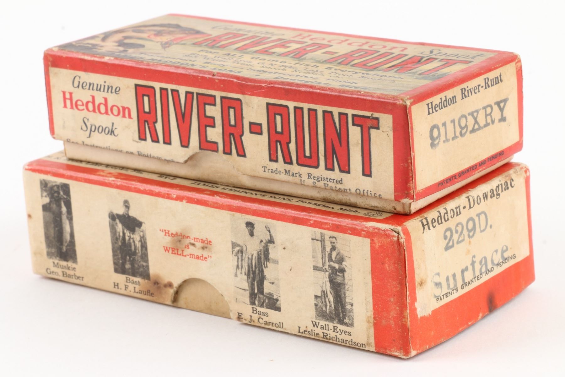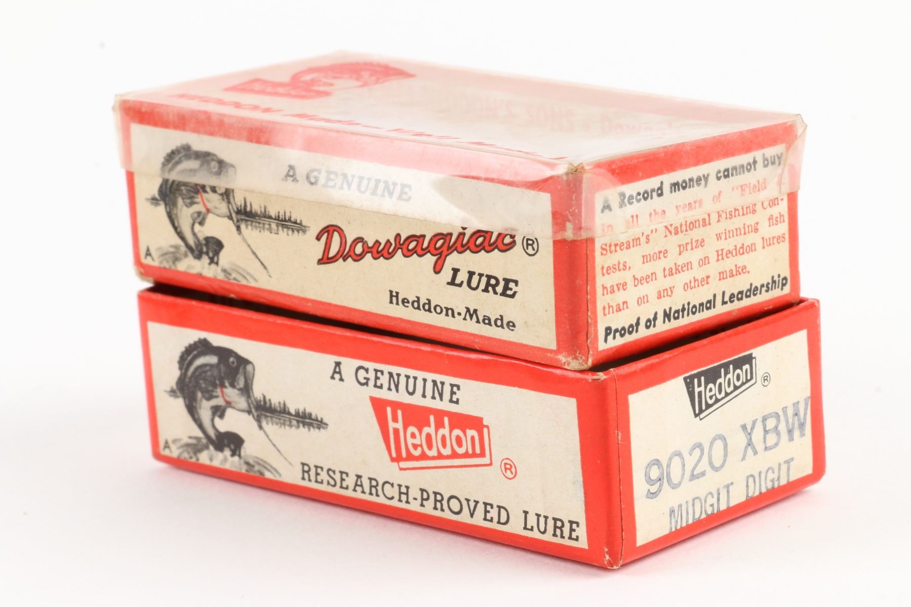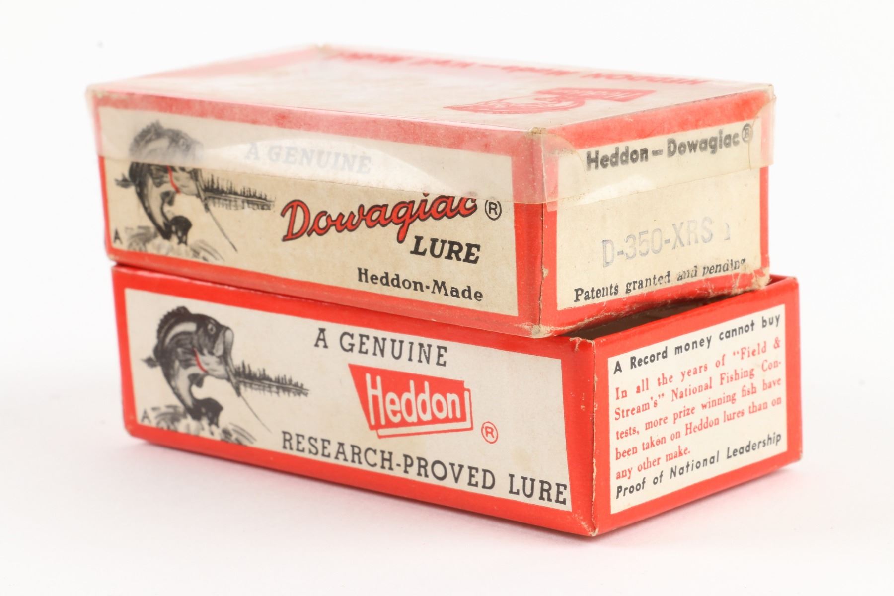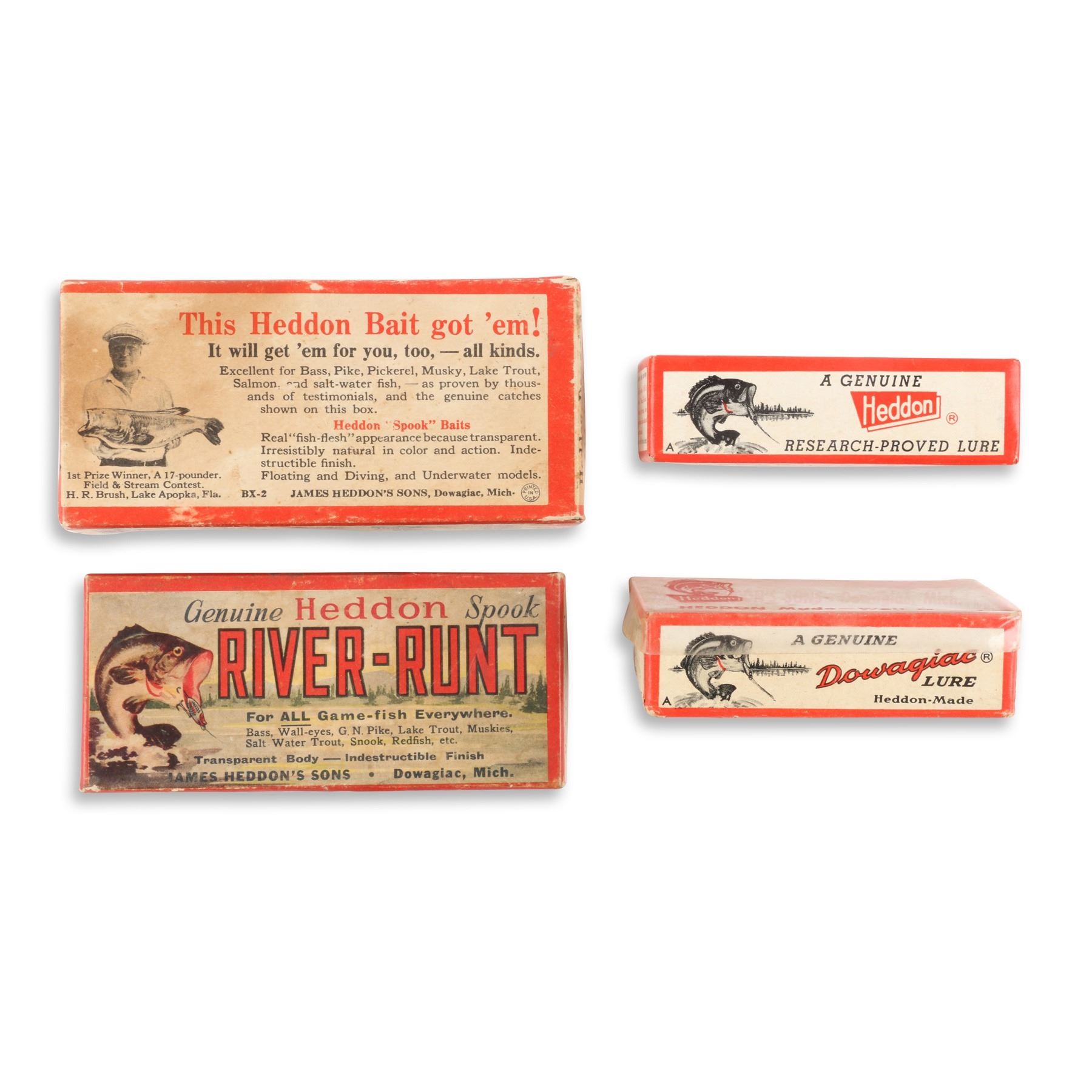 Heddon, United States. 1940s - 1960s. Material: Cardboard. Quantity: 4. Grade: VG. 3.25" - 4.5" boxes. Est. $50-75.