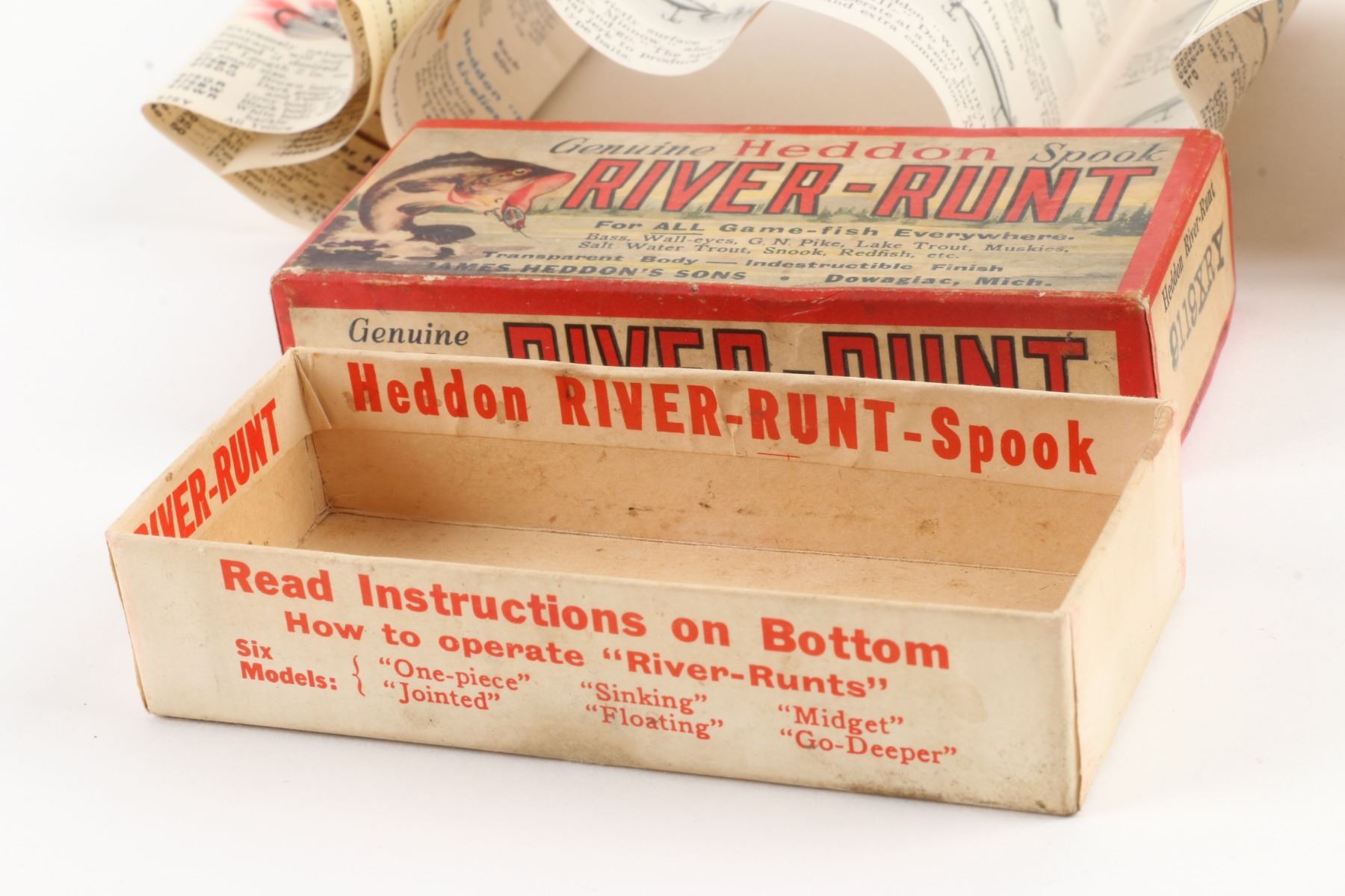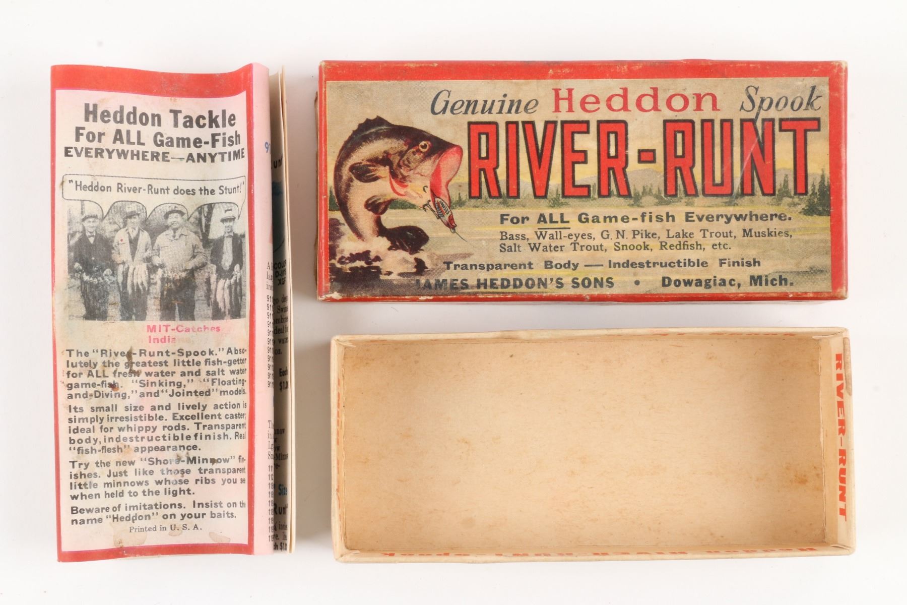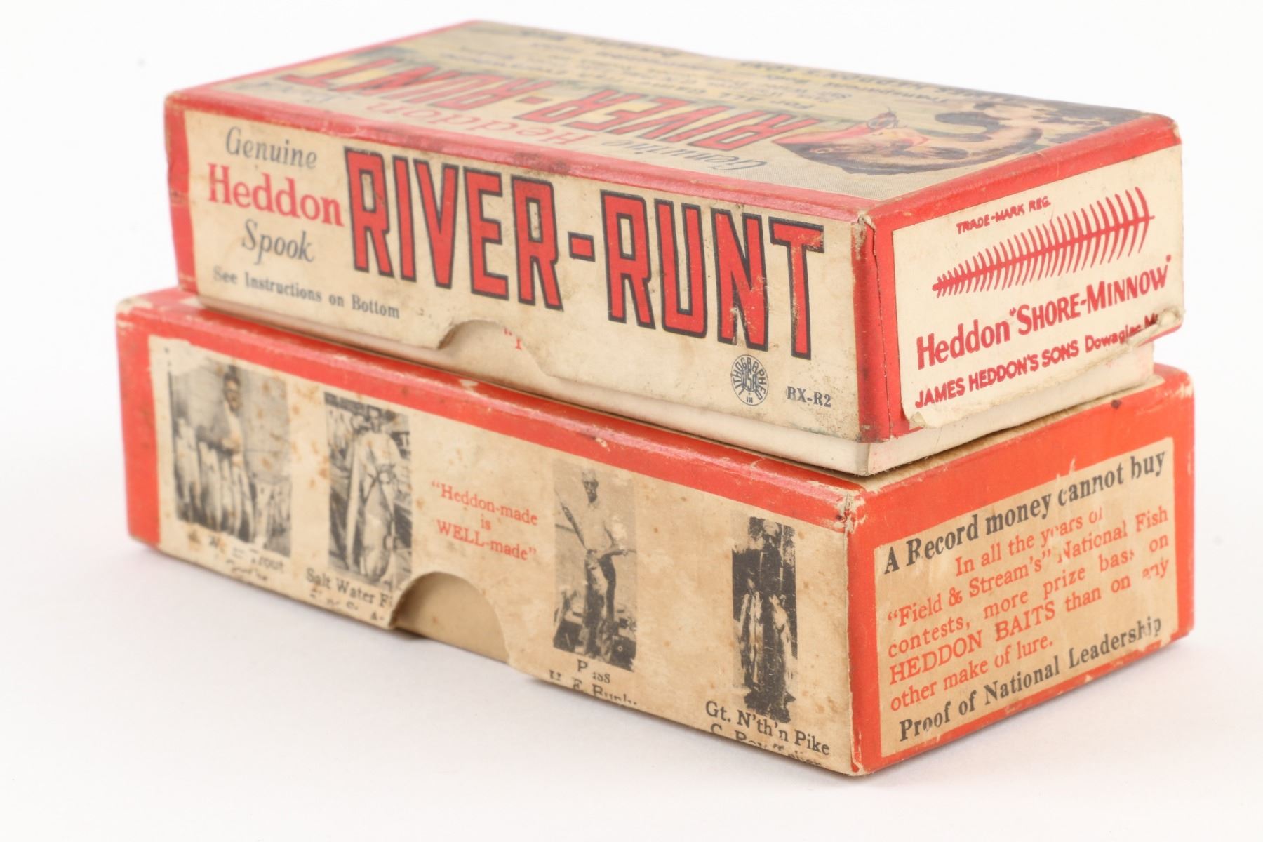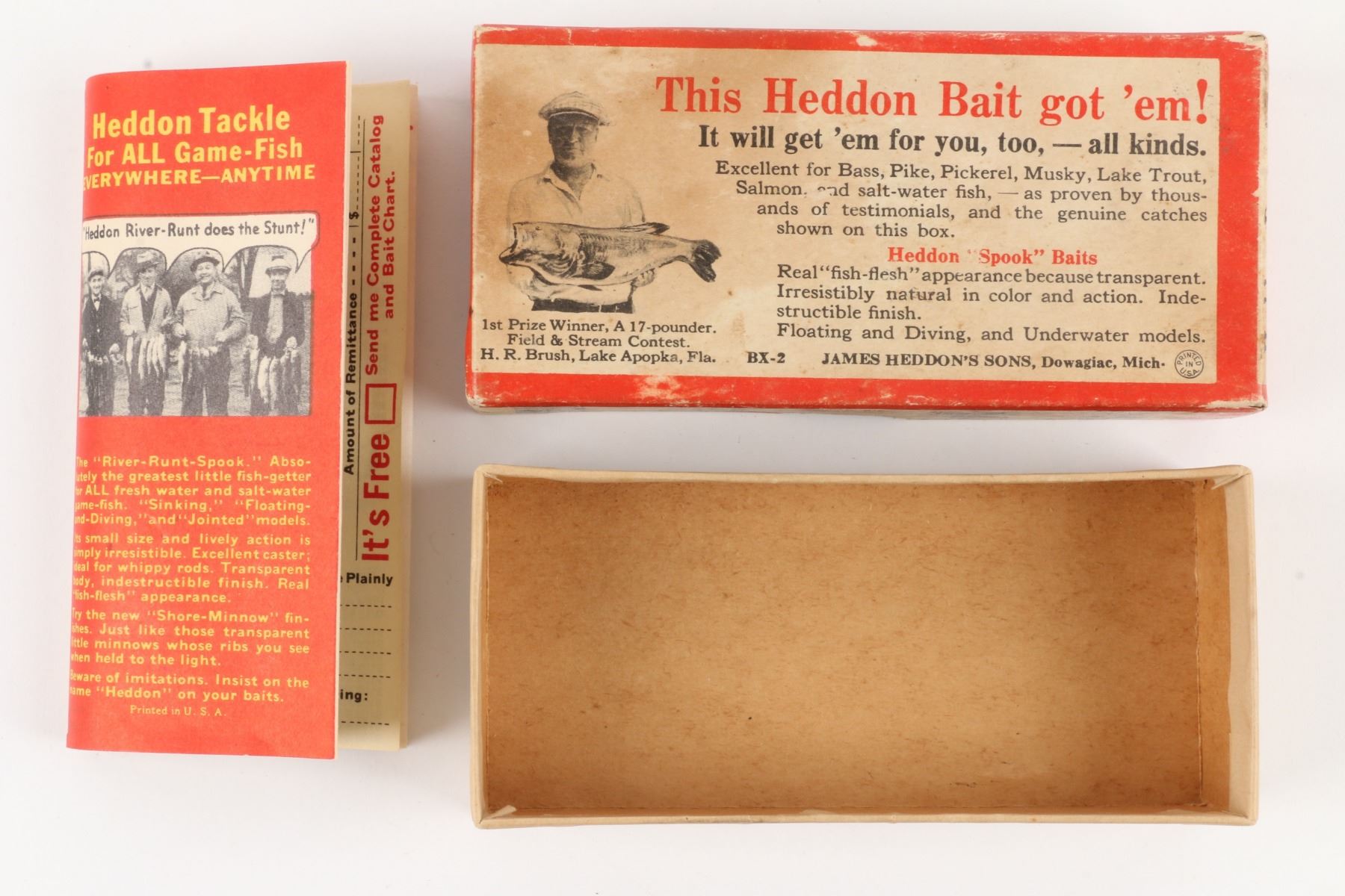Heddon, United States. 1940s - 1960s. Material: Cardboard. Quantity: 4. Grade: VG. 3.25" - 4.5" boxes. Est. $50-75.