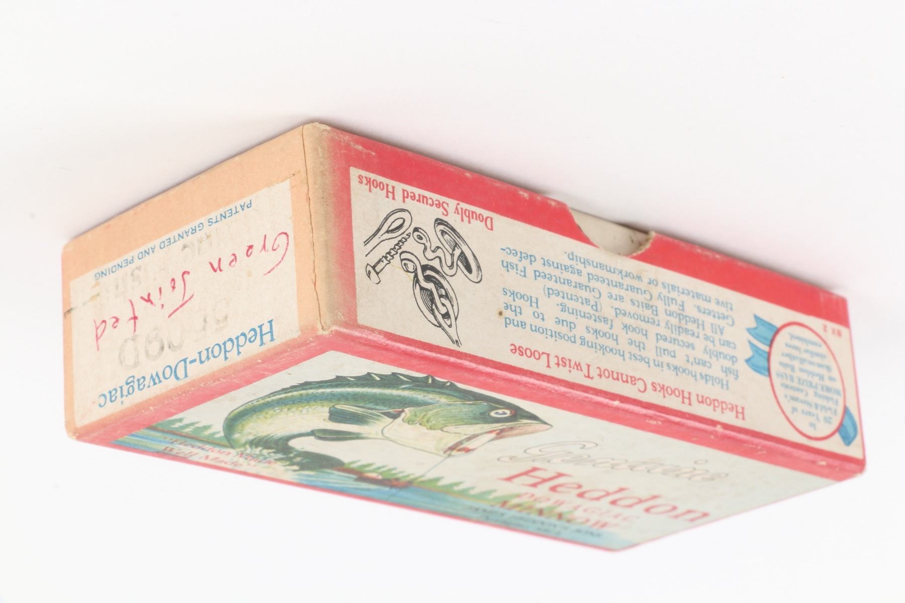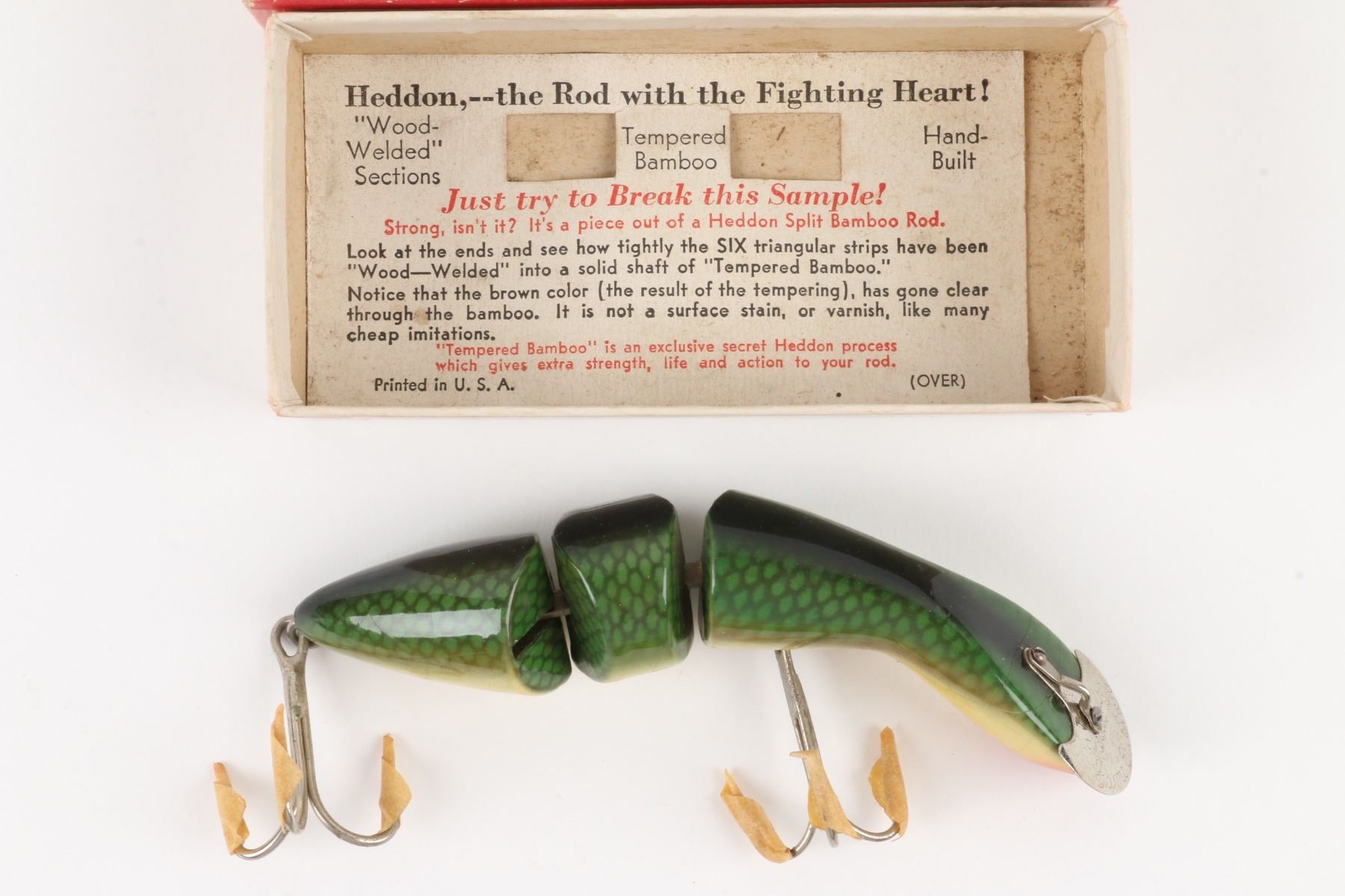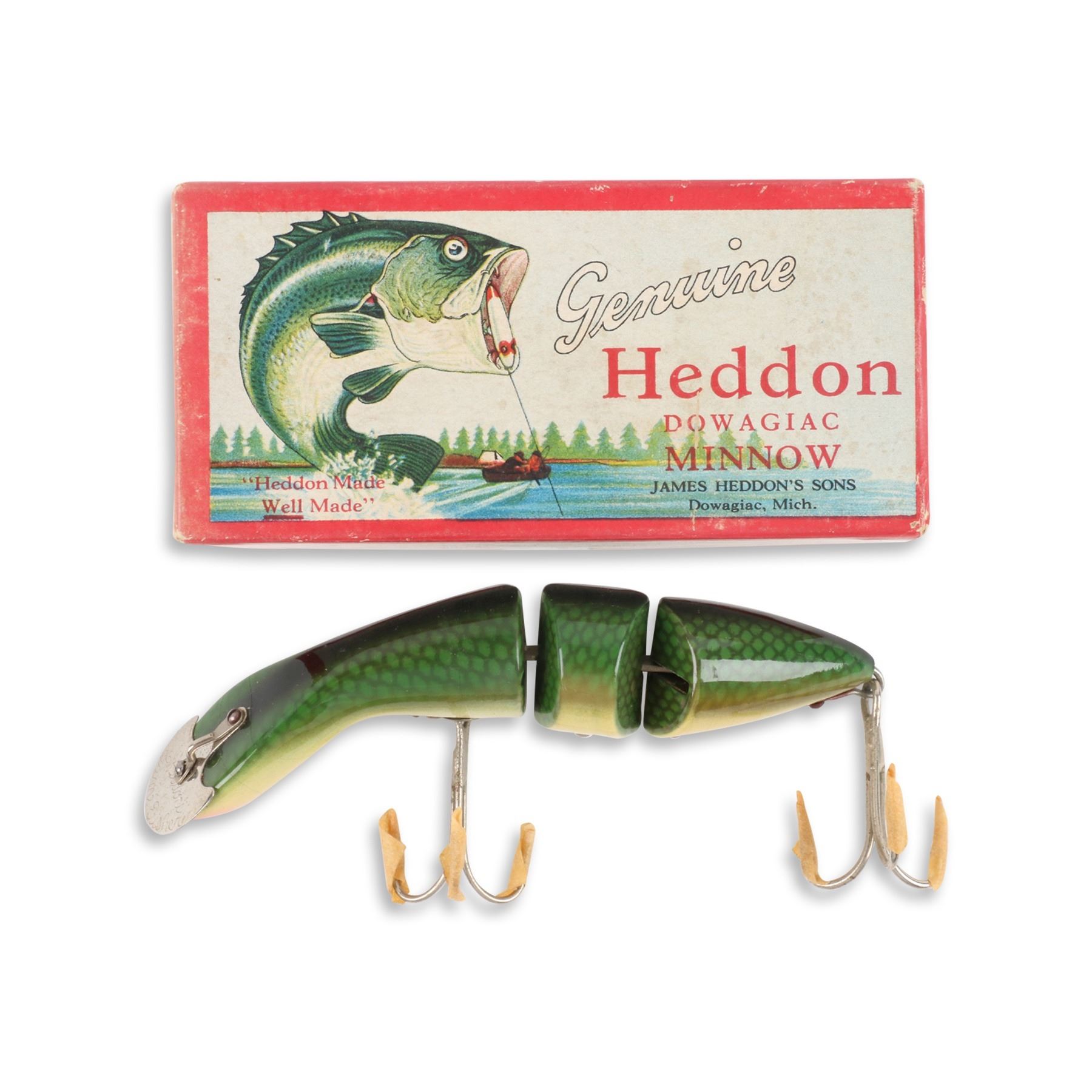 Heddon, United States. 1930s. Boxed. Material: Wood. Quantity: 1. Green scale. Grade: VG+. 4.75". Est. $75-100.