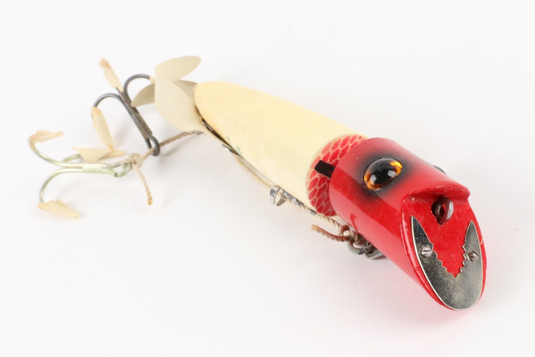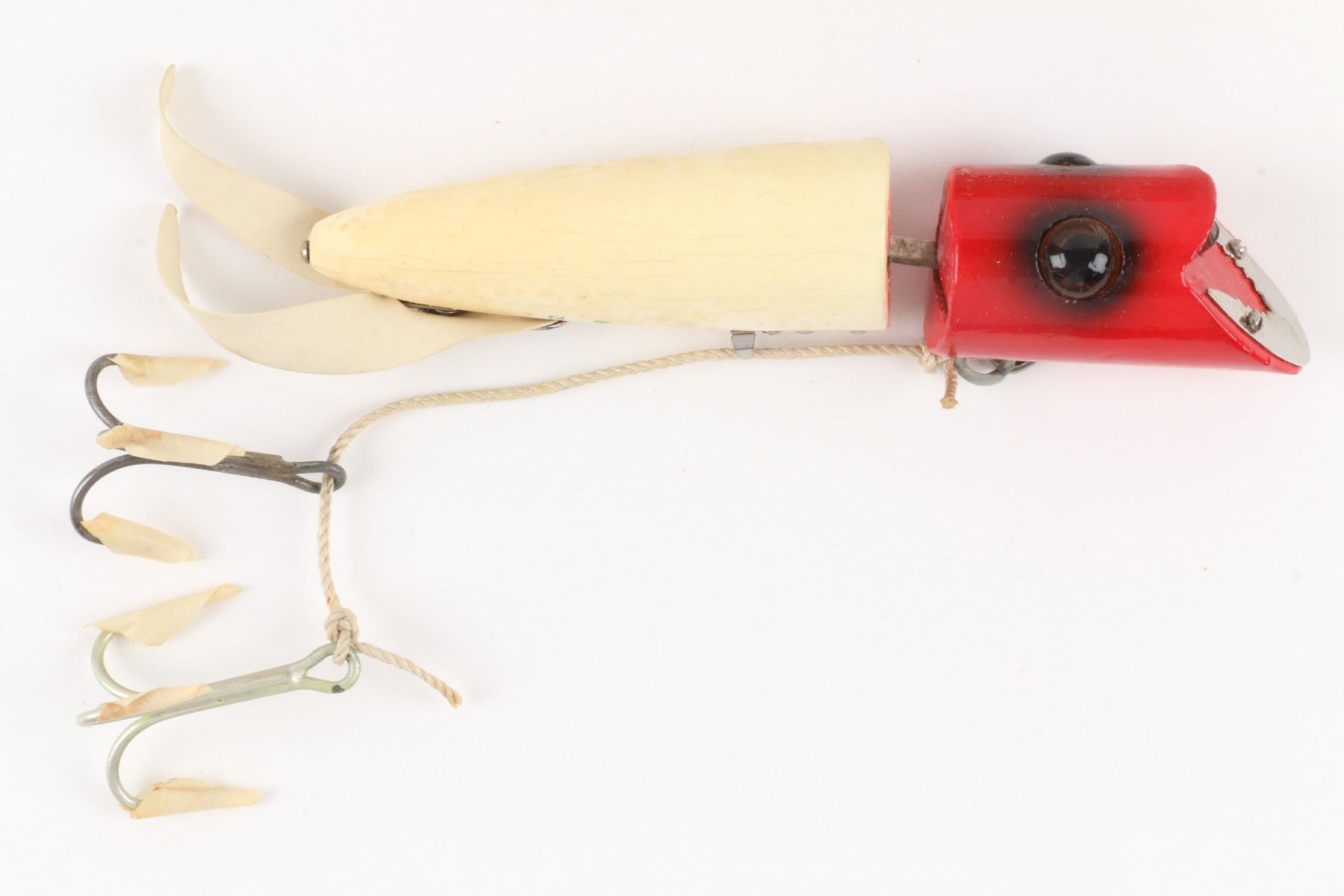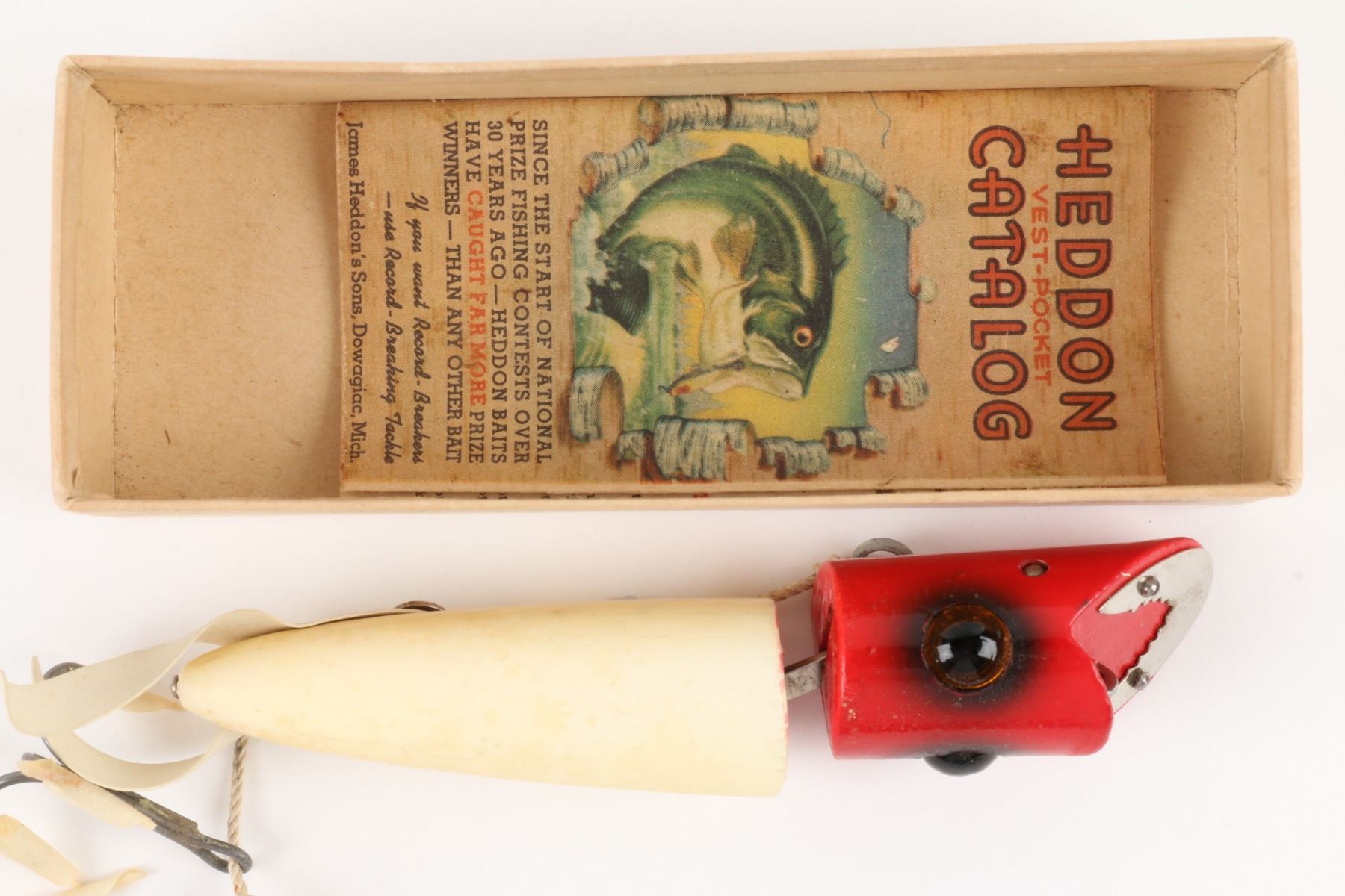 Heddon, United States. 1940s. Material: Wood. Quantity: 1. red and white. Grade: VG+. 5.75" box. Est. $75-100.