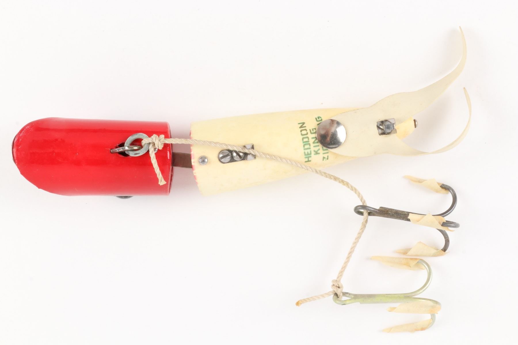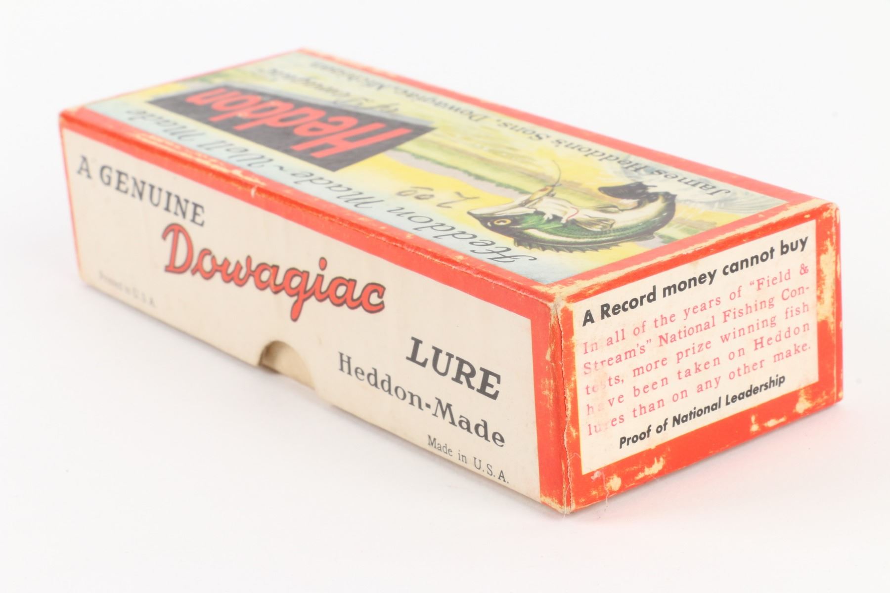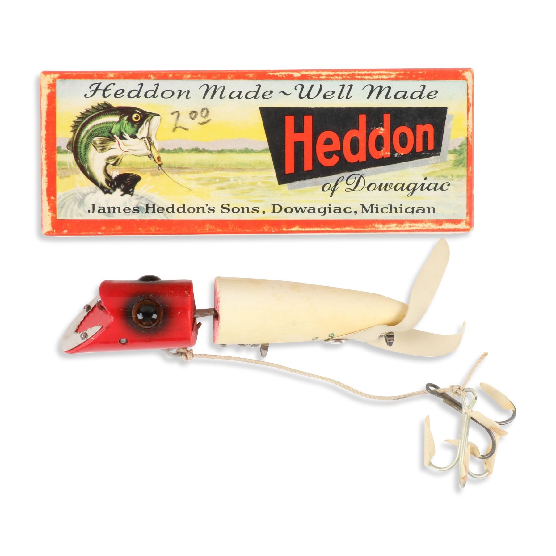 Heddon, United States. 1940s. Material: Wood. Quantity: 1. red and white. Grade: VG+. 5.75" box. Est. $75-100.