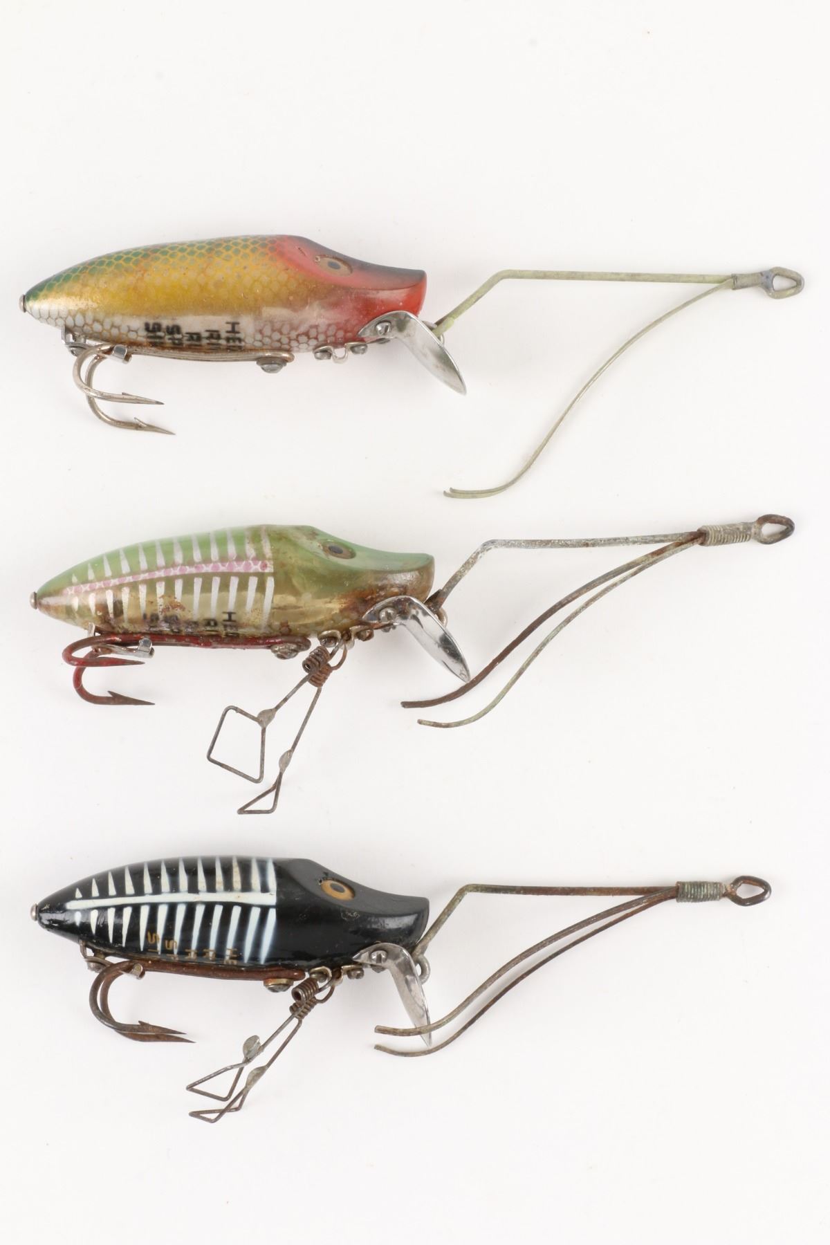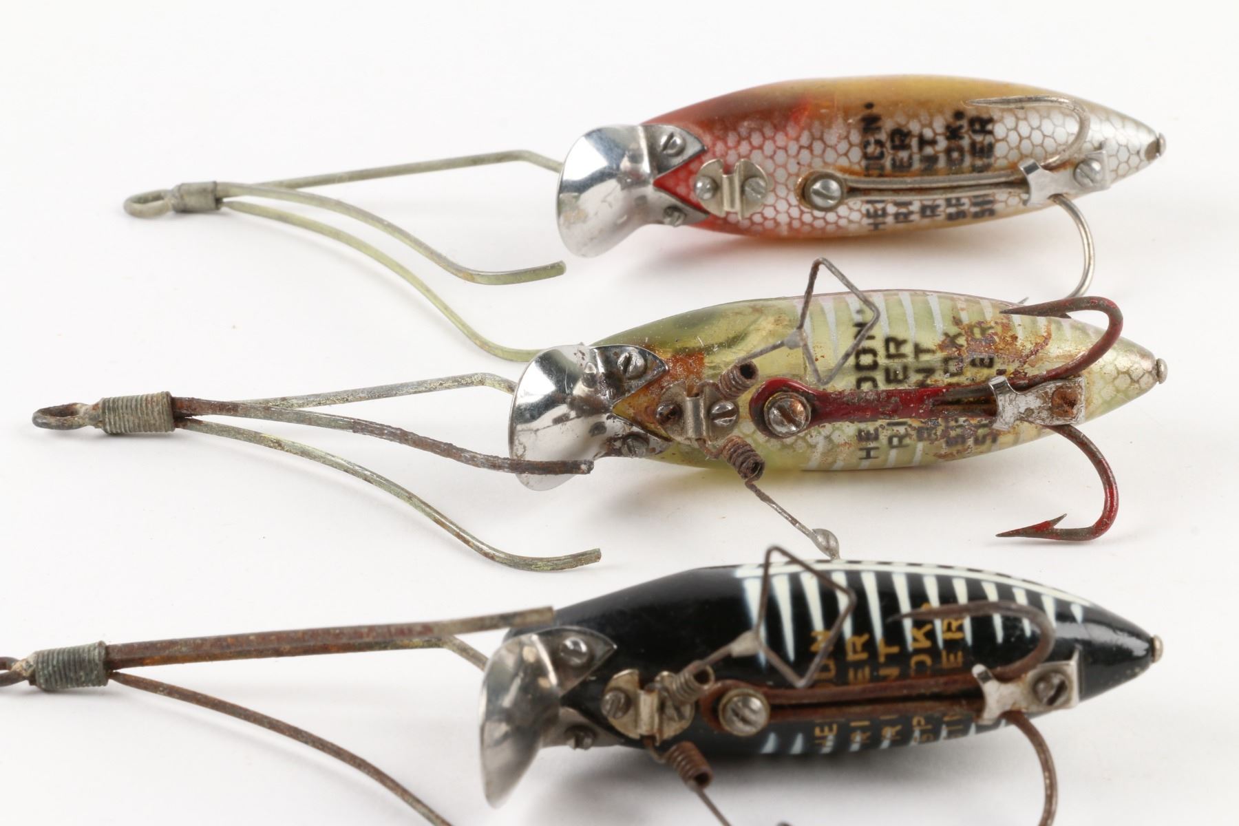 Heddon, United States. 1940s. Material: Plastic. Quantity: 3. Grade: VG. 2.5" each. Est. $100-125.