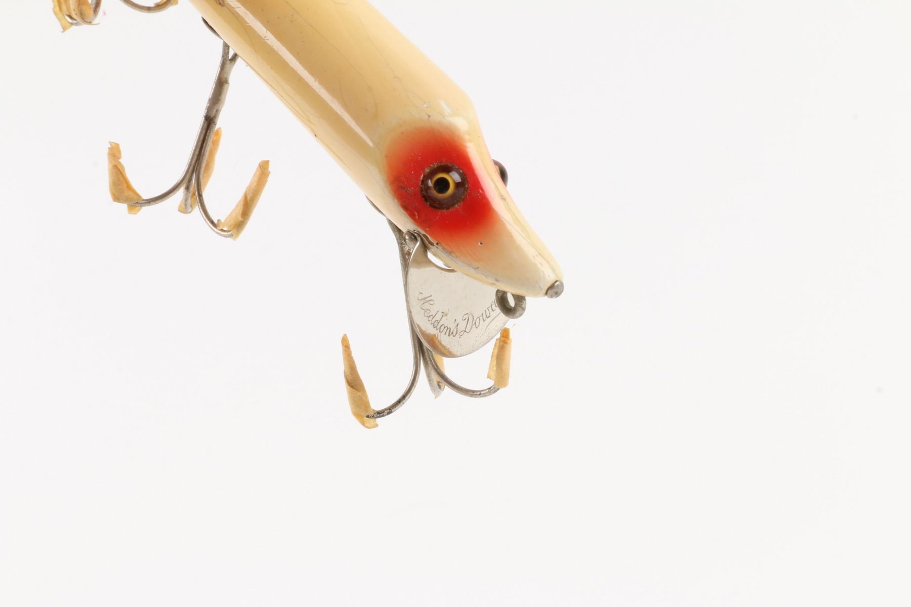 Heddon, United States. 1930s to 1940s. Material: Wood. Quantity: 3. Game Fisher, Vamp, and Crab Wiggler. Grade: VG. 4" - 4.5". Est. $100-125.