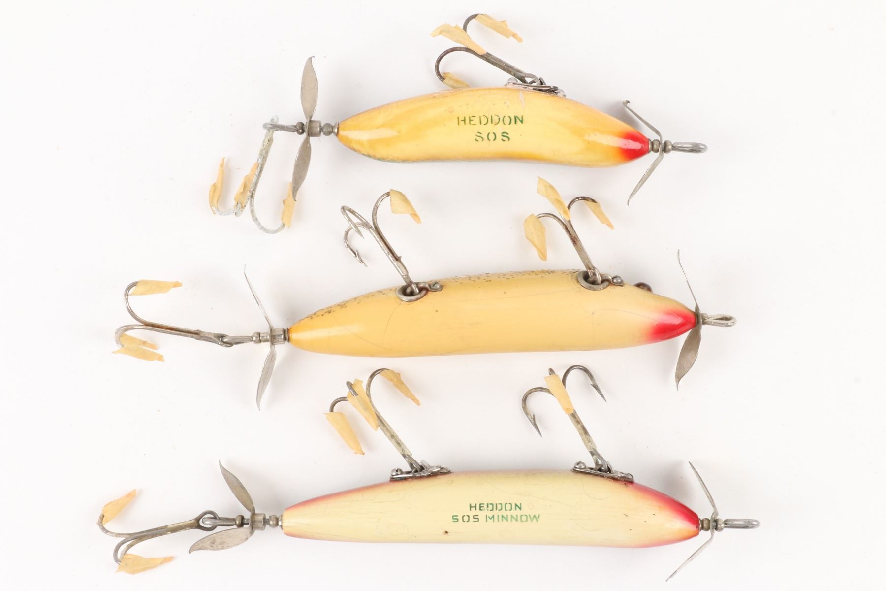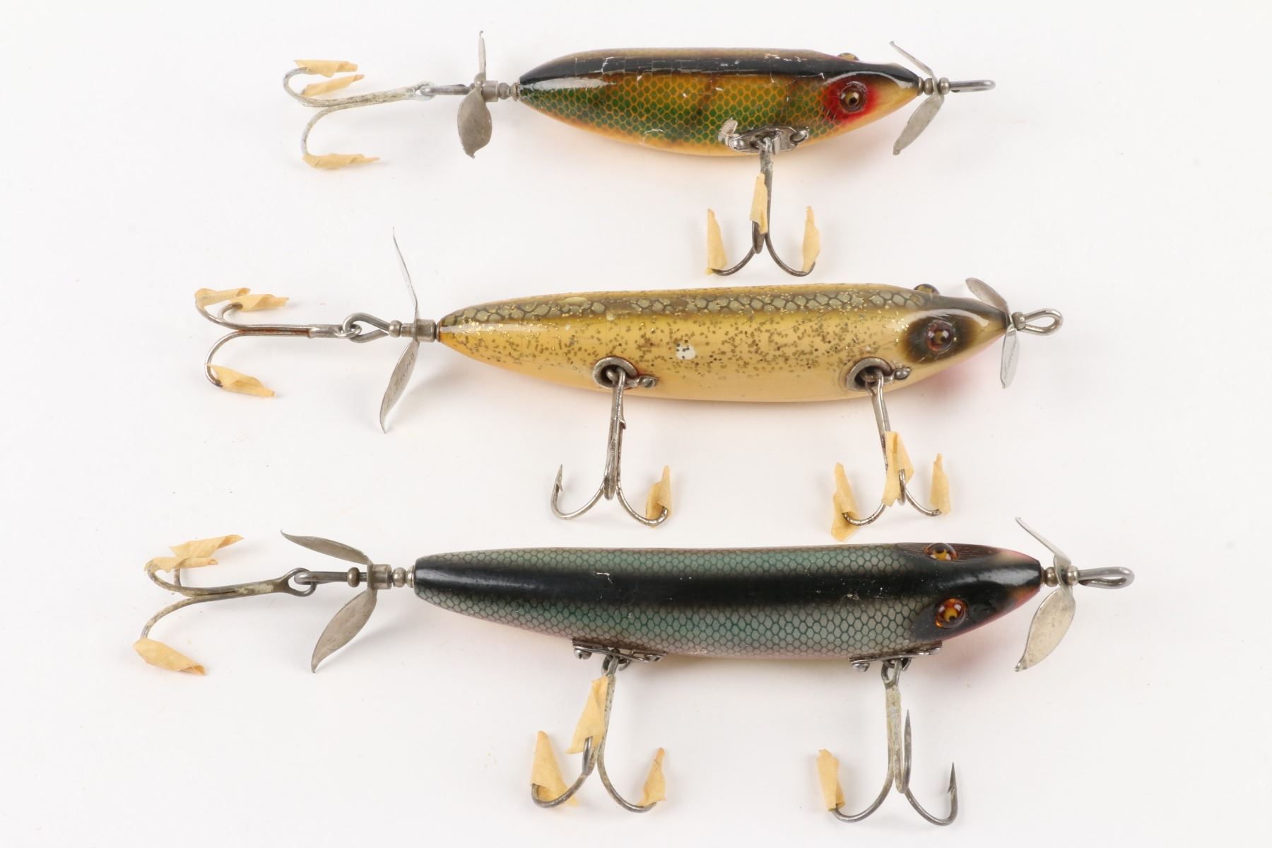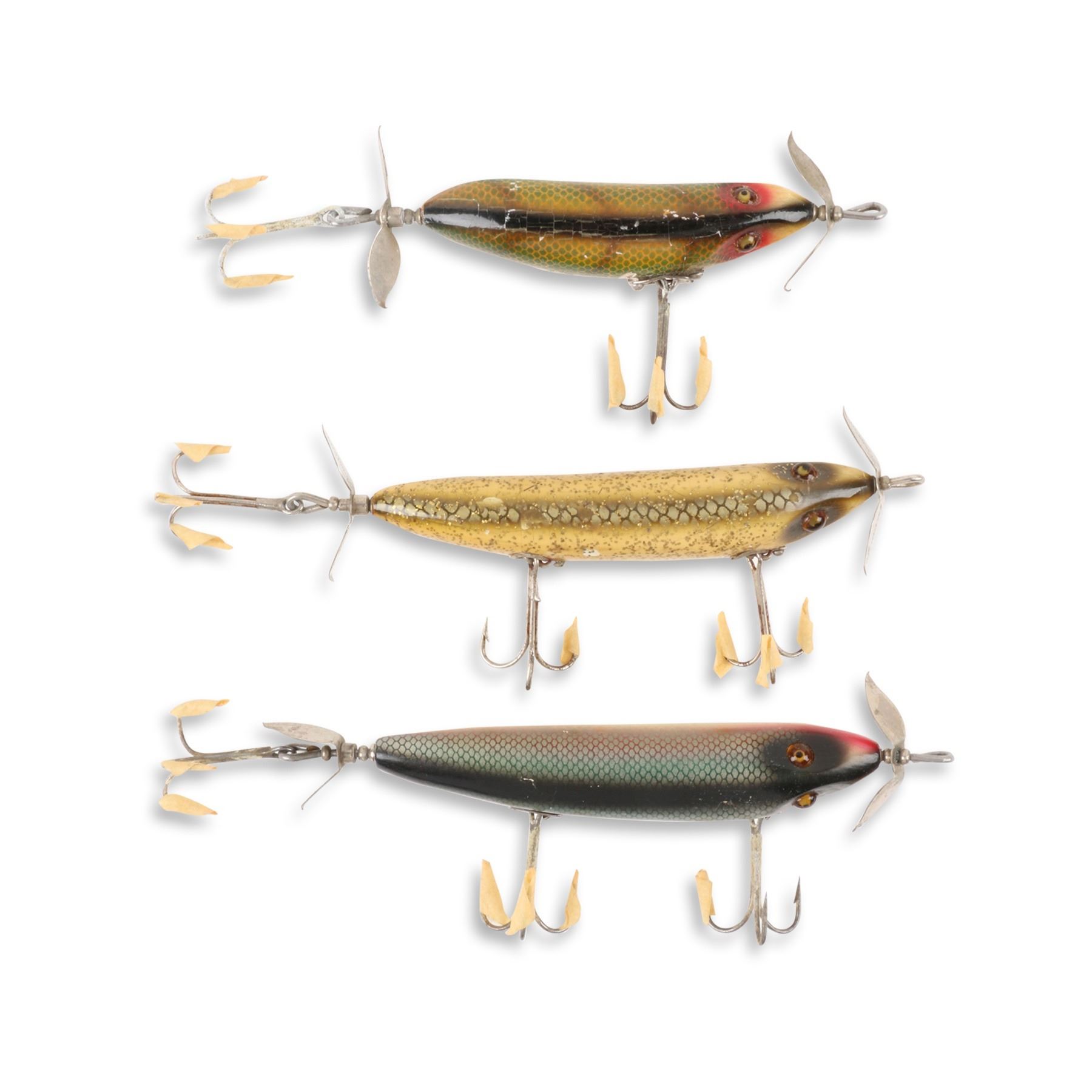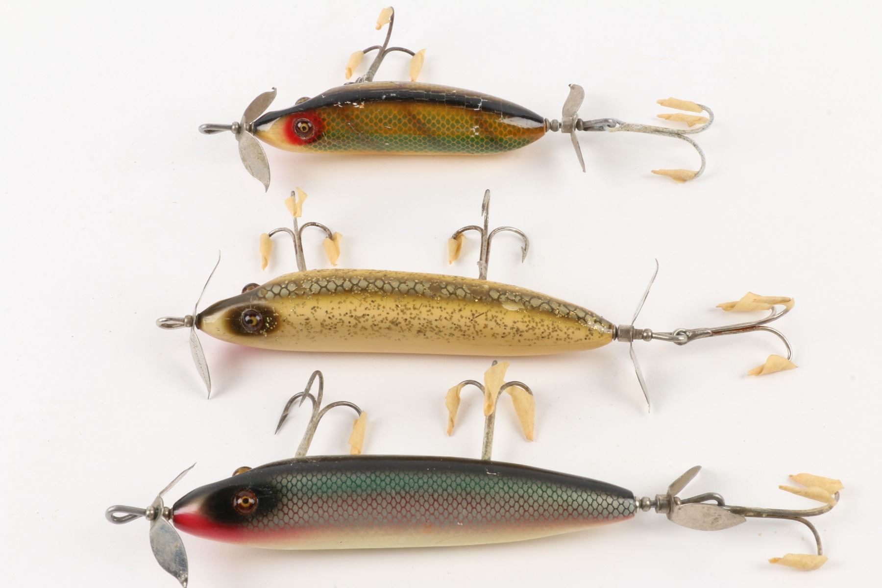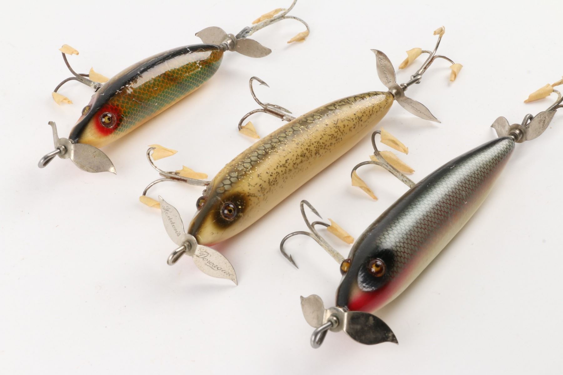 Heddon, United States. 1930s to 1940s. Material: Wood. Quantity: 3. Grade: VG. 3.5" - 4.5" each. Est. $125-150.