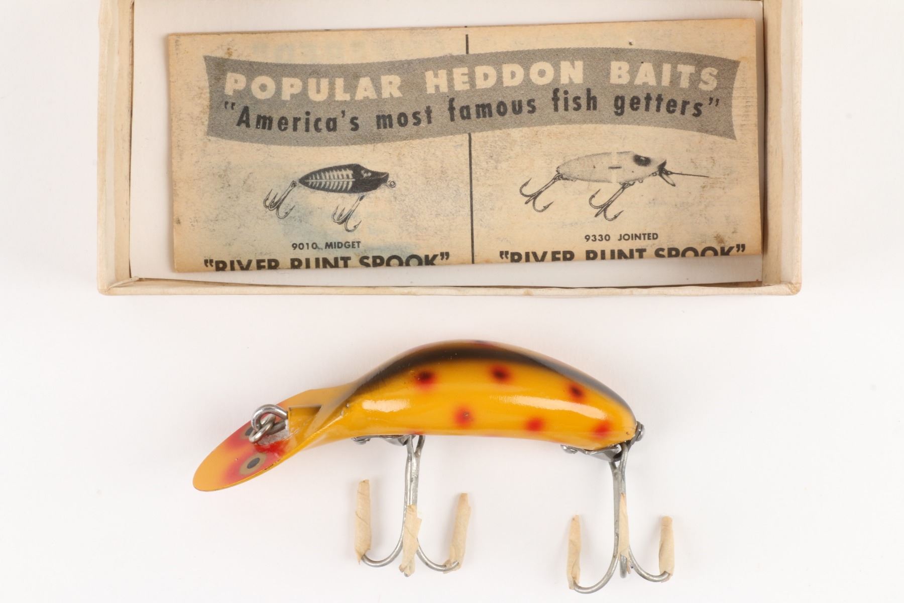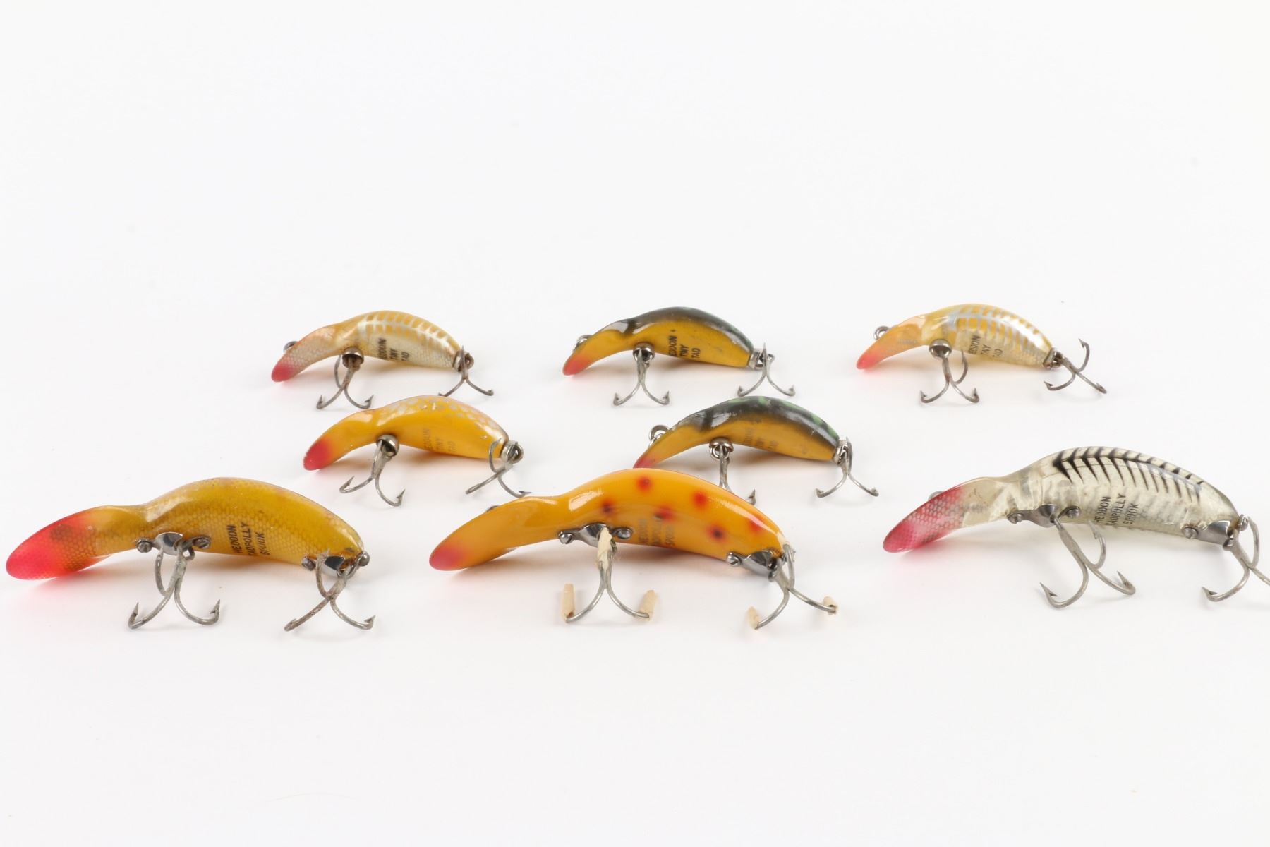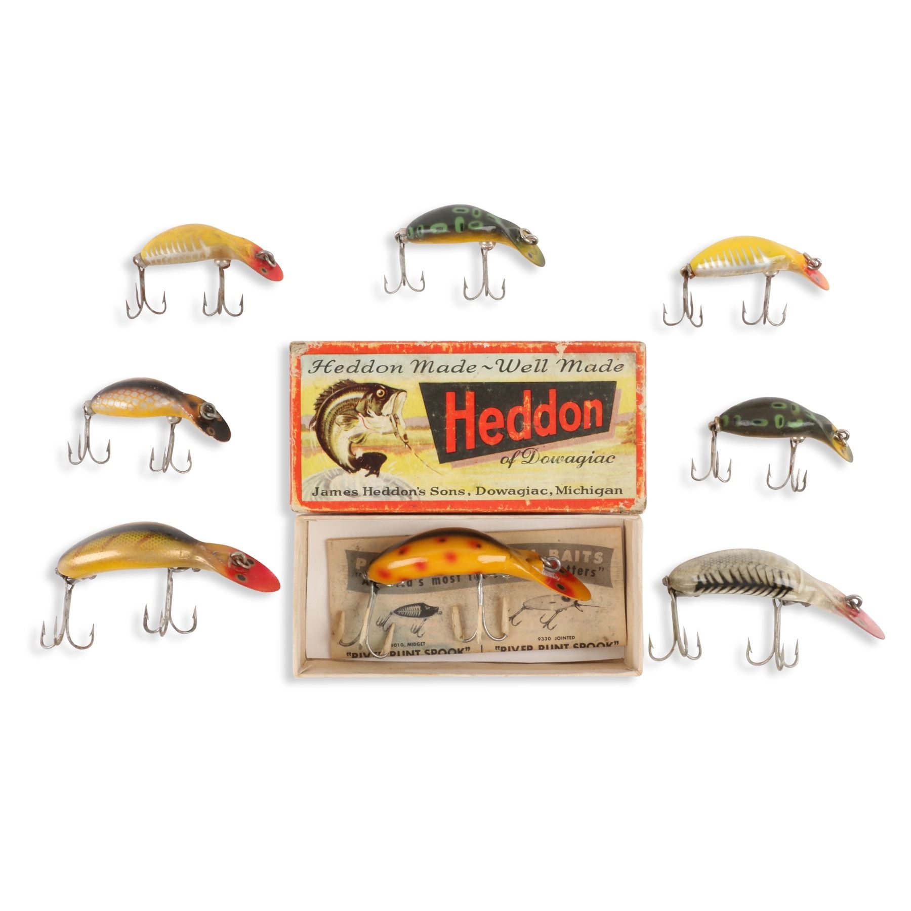 Heddon, United States. 1950s. Material: Plastic. Quantity: 8. Grade: VG. 4.5" box. Est. $50-75.