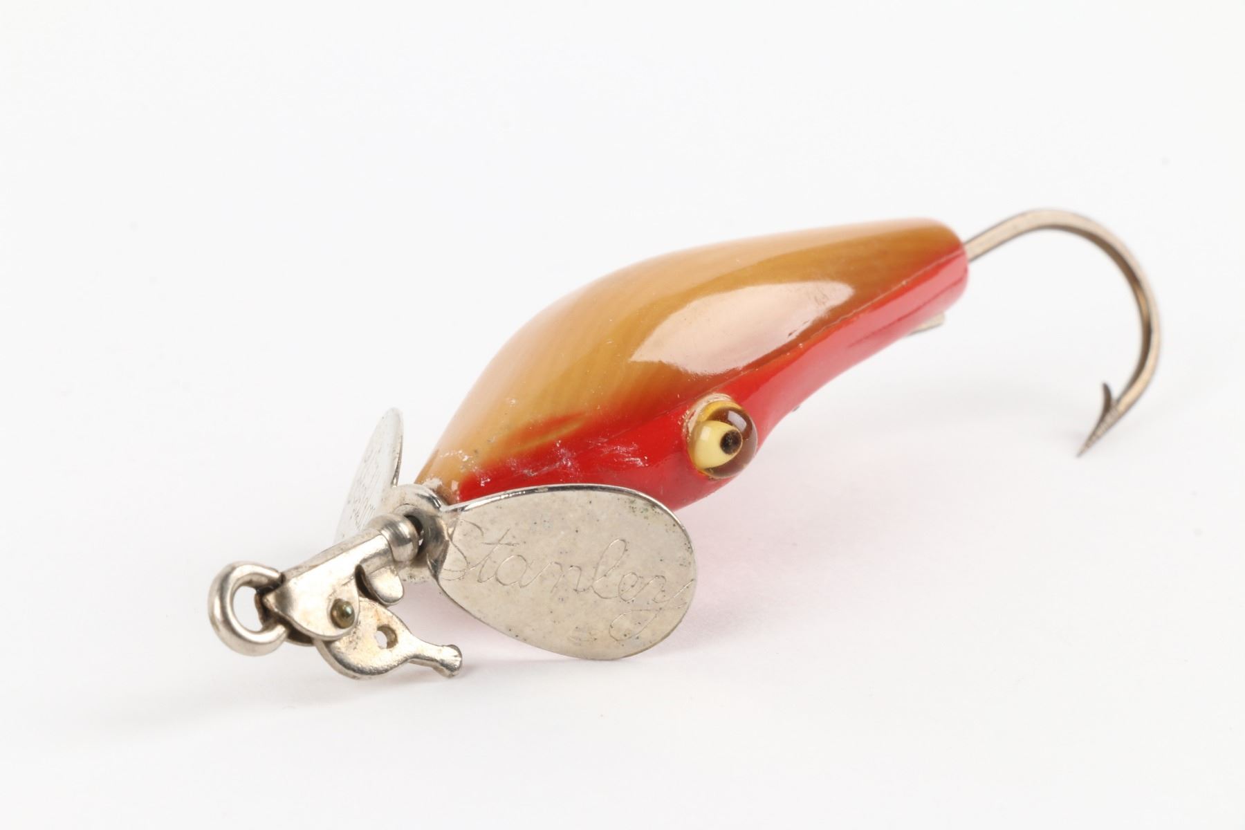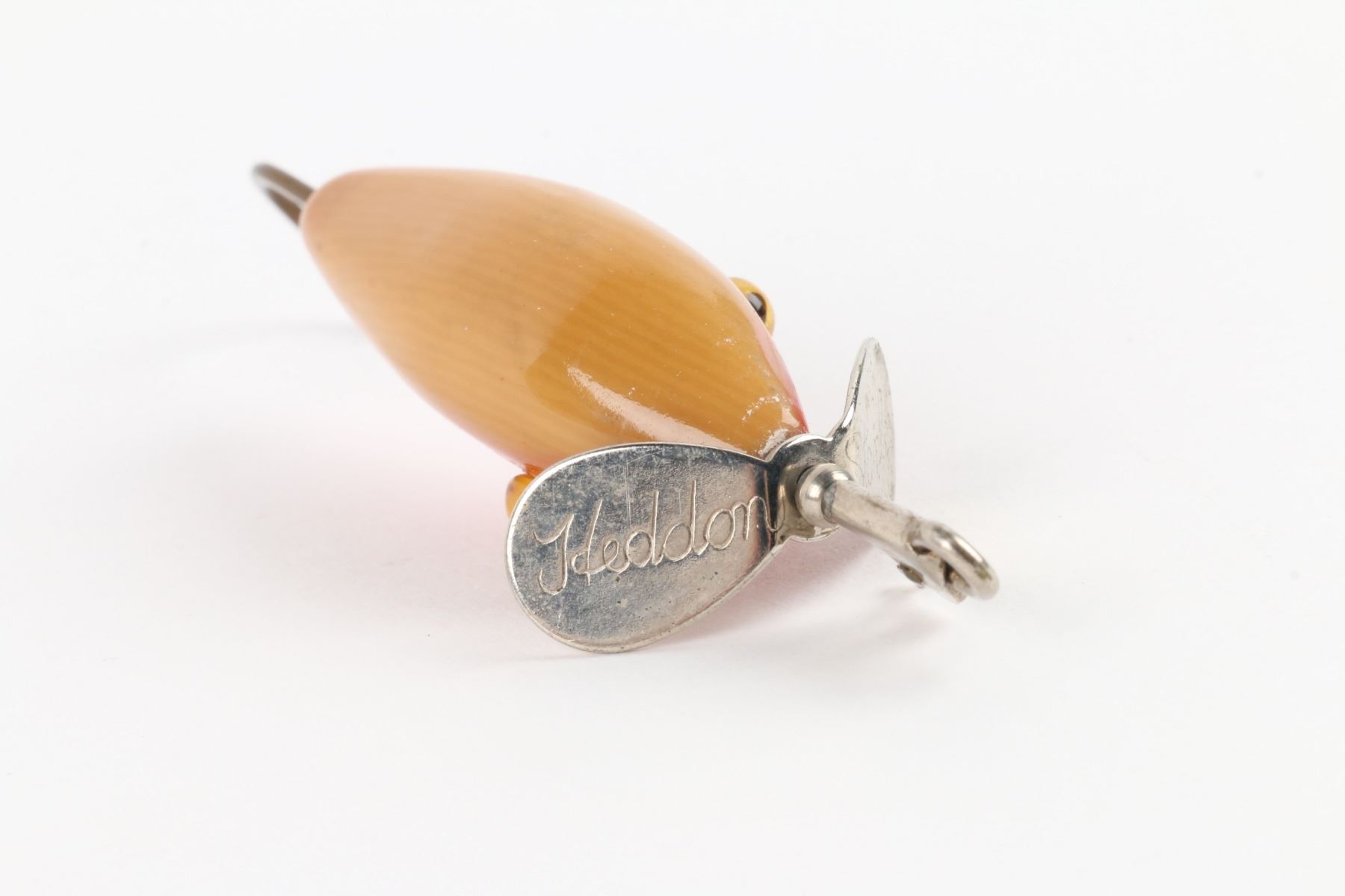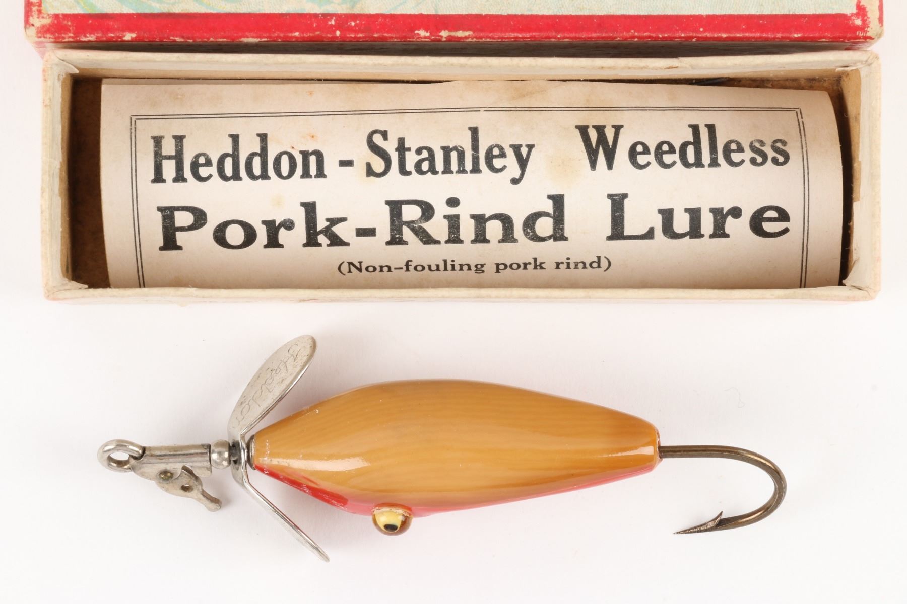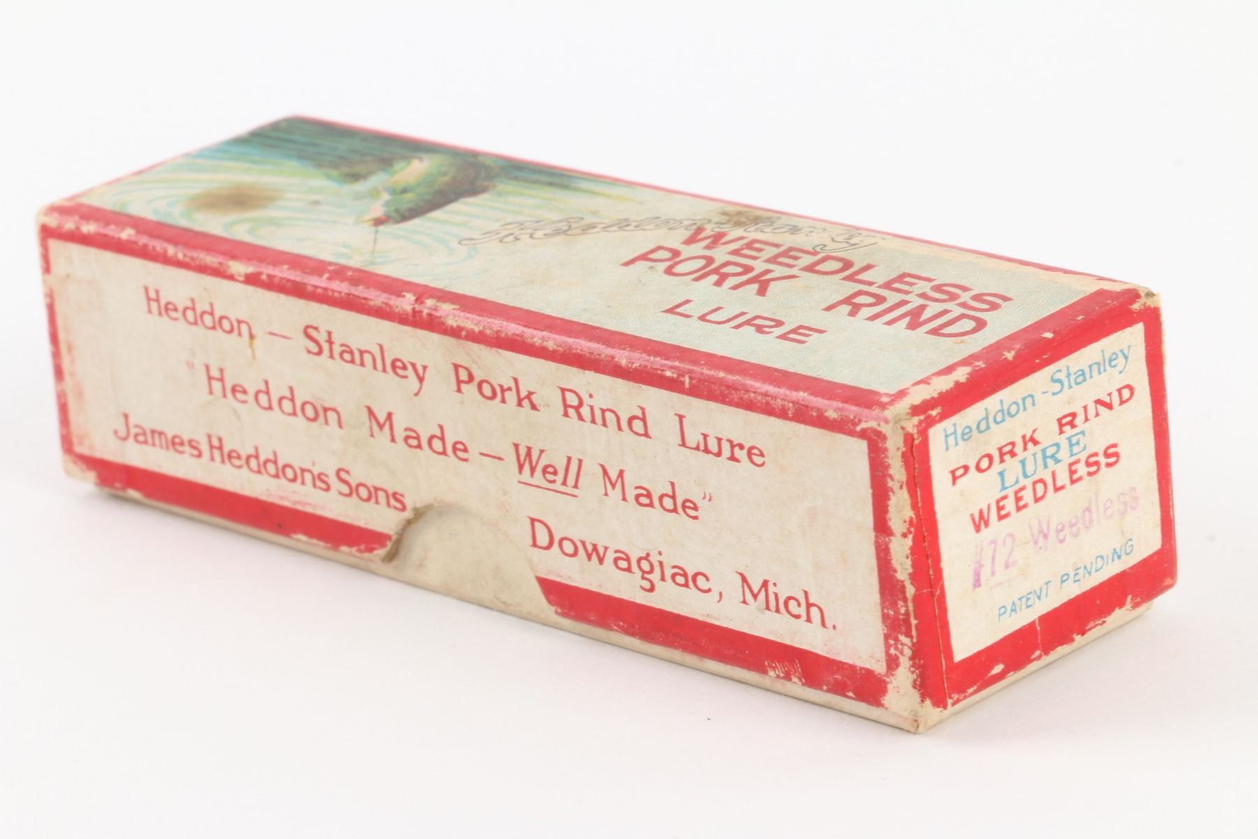 Heddon, United States. 1920s. Boxed. Material: Bakelite or Pyraline. Quantity: 1. Red and white. Grade: VG+. 4" box. Est. $50-75.