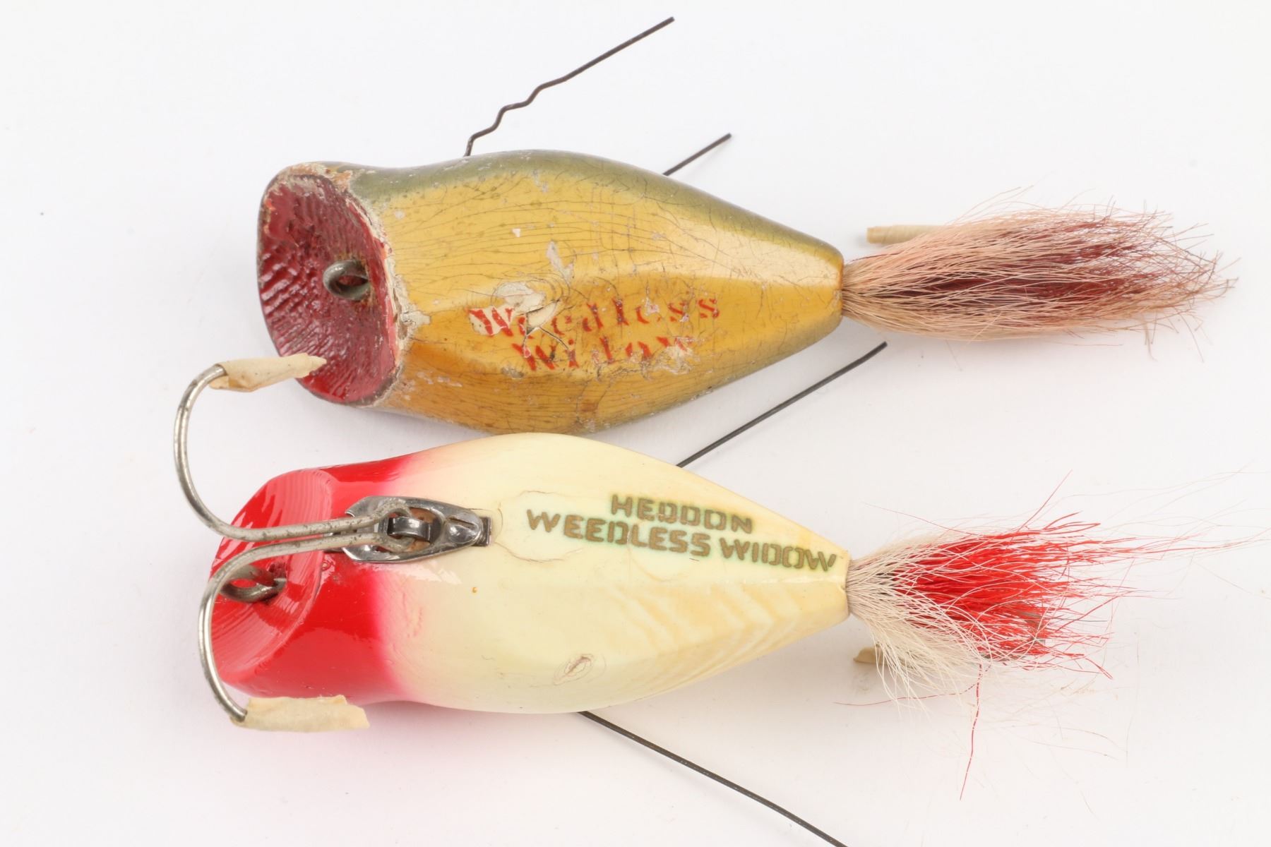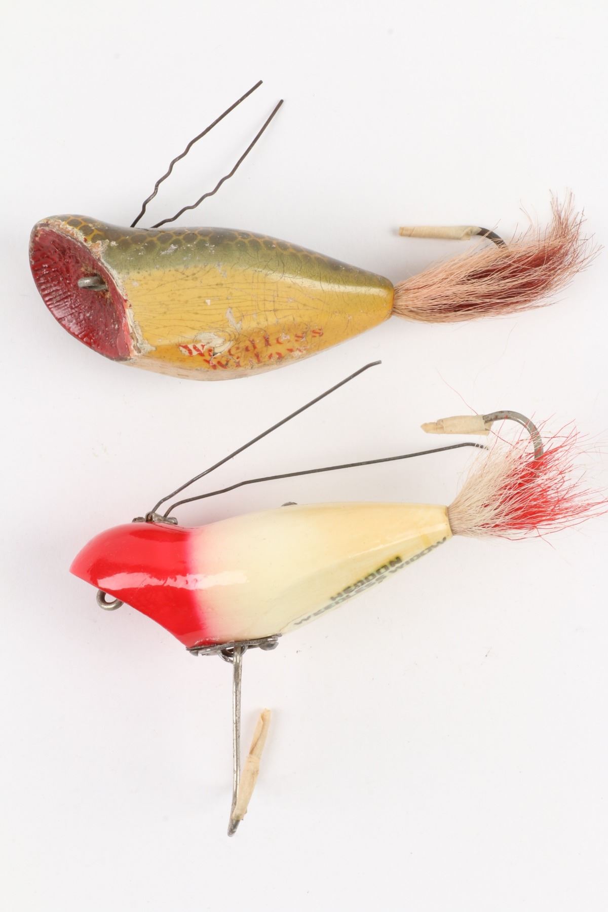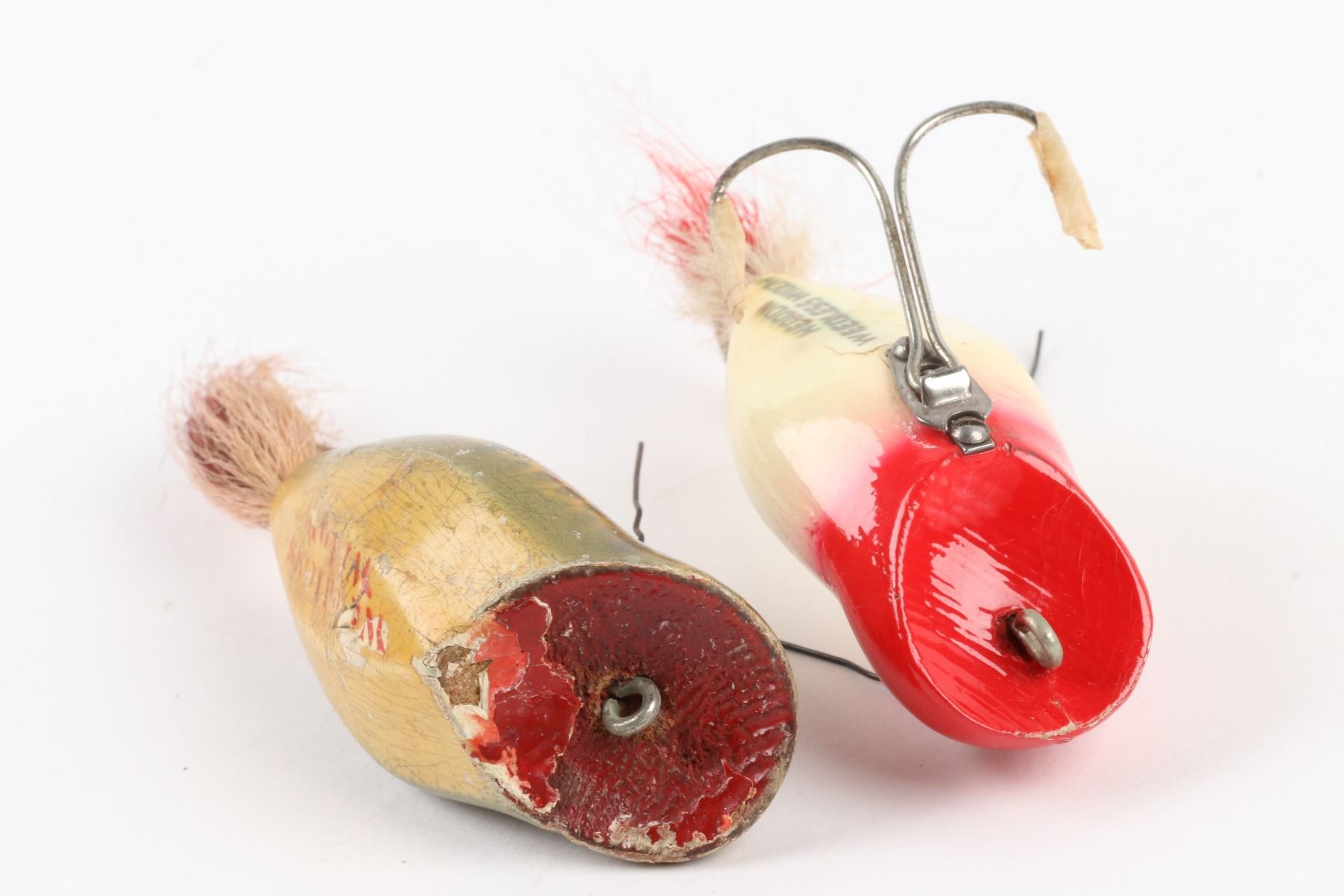 Heddon, United States. 1940s. Material: Wood. Quantity: 2. Grade: G. 2.75" - 3". Est. $75-100.