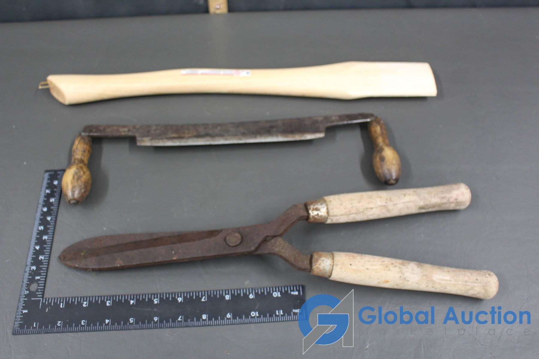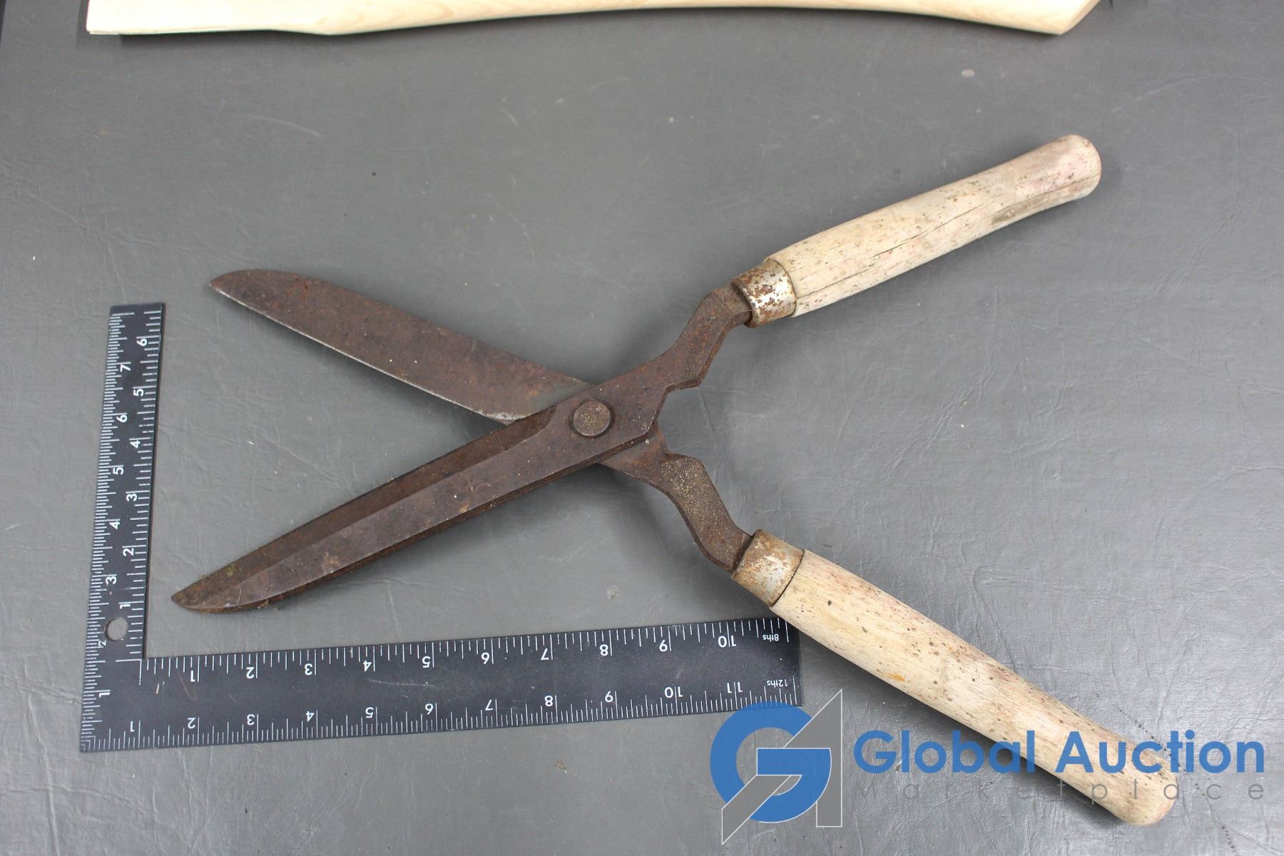 Hedge Trimmers, 21" Axe Handle (New) and Draught Knife