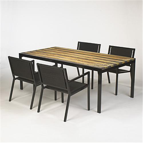 enameled steel, washed teak, rope