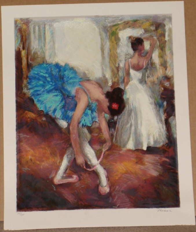 This beautiful 22”x18” serigraph of a ballet scene is signed in pencil and numbered in an edition of 380 examples. Domestic shipping-$20, International depends upon location.