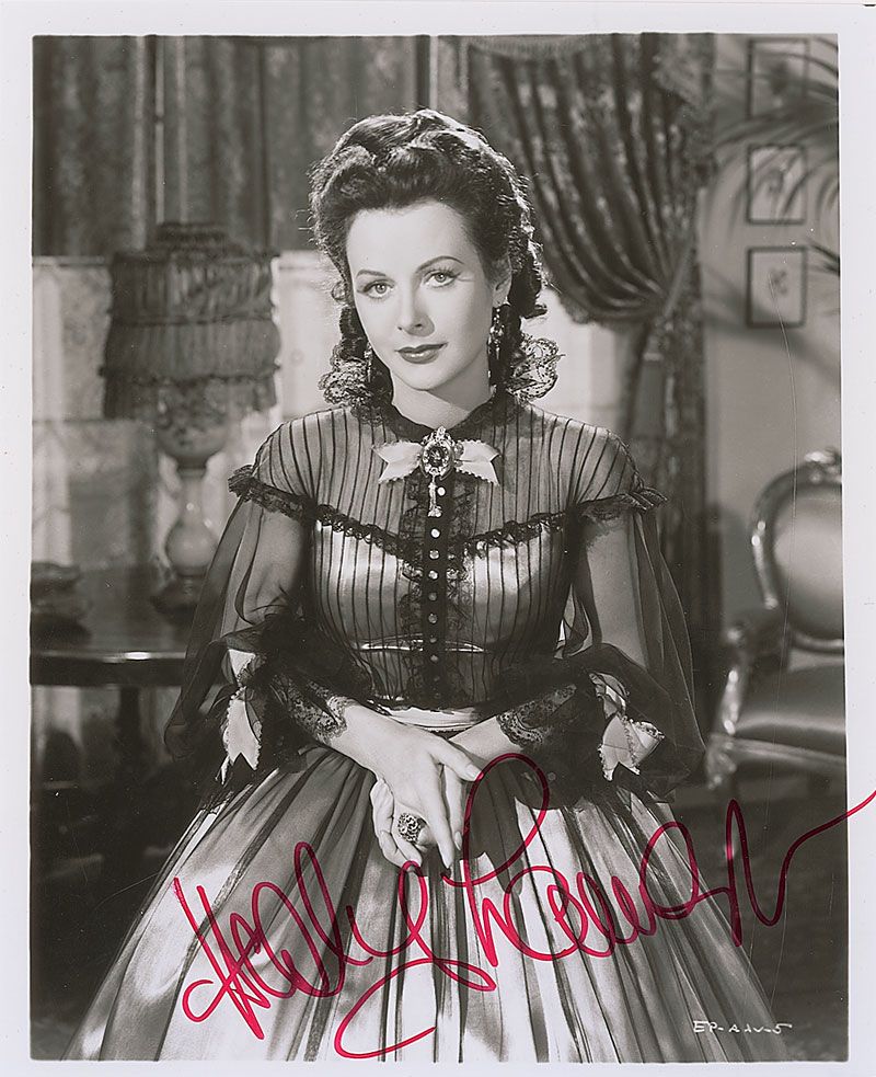 Glossy 8 x 10 photo of Lamarr, signed in red felt tip. In fine condition.
