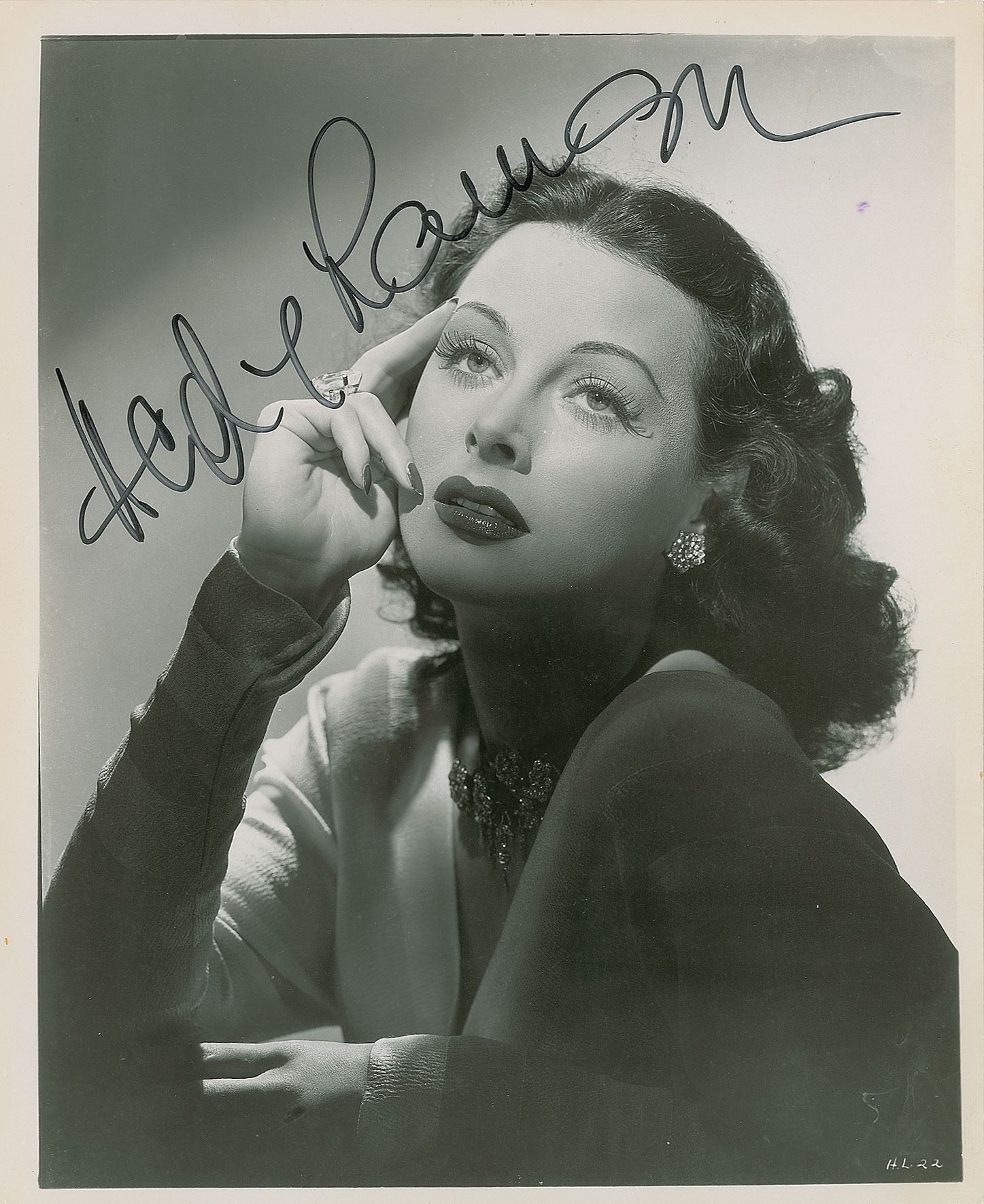 Attractive glossy 8 x 10 studio portrait of Lamarr, prominently signed in black felt tip. In fine condition, with a few small creases and a light surface scratch touching Lamarr's forehead.