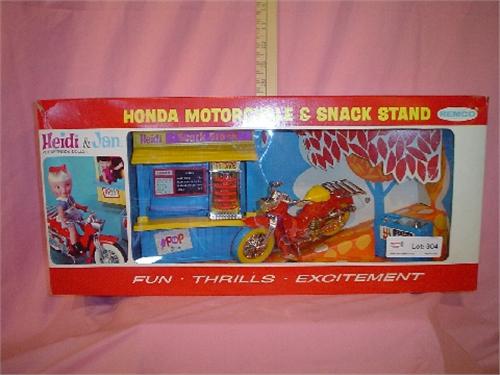 "Heidi & Jan" Honda Motorcycle & Snack Stand by Remco 1966. #3068 - New, In Orig. Box - Nice Shape (small crack in plastic)
