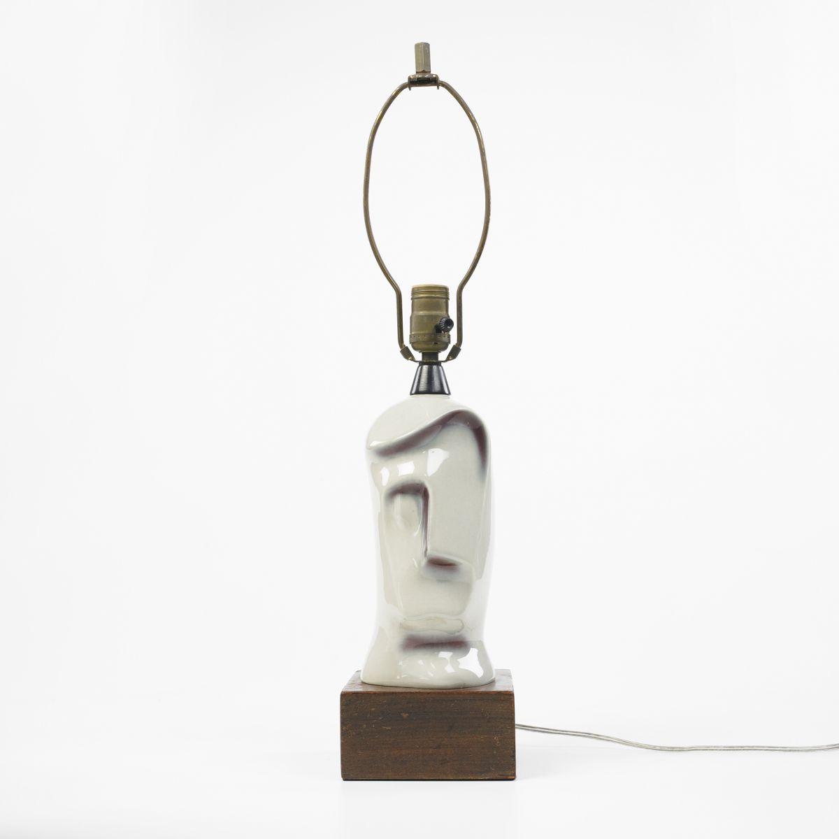 Nicks and significant wear to walnut base. Ceramic is in good condition but has loosened from base. This lamp is sold without a shade.