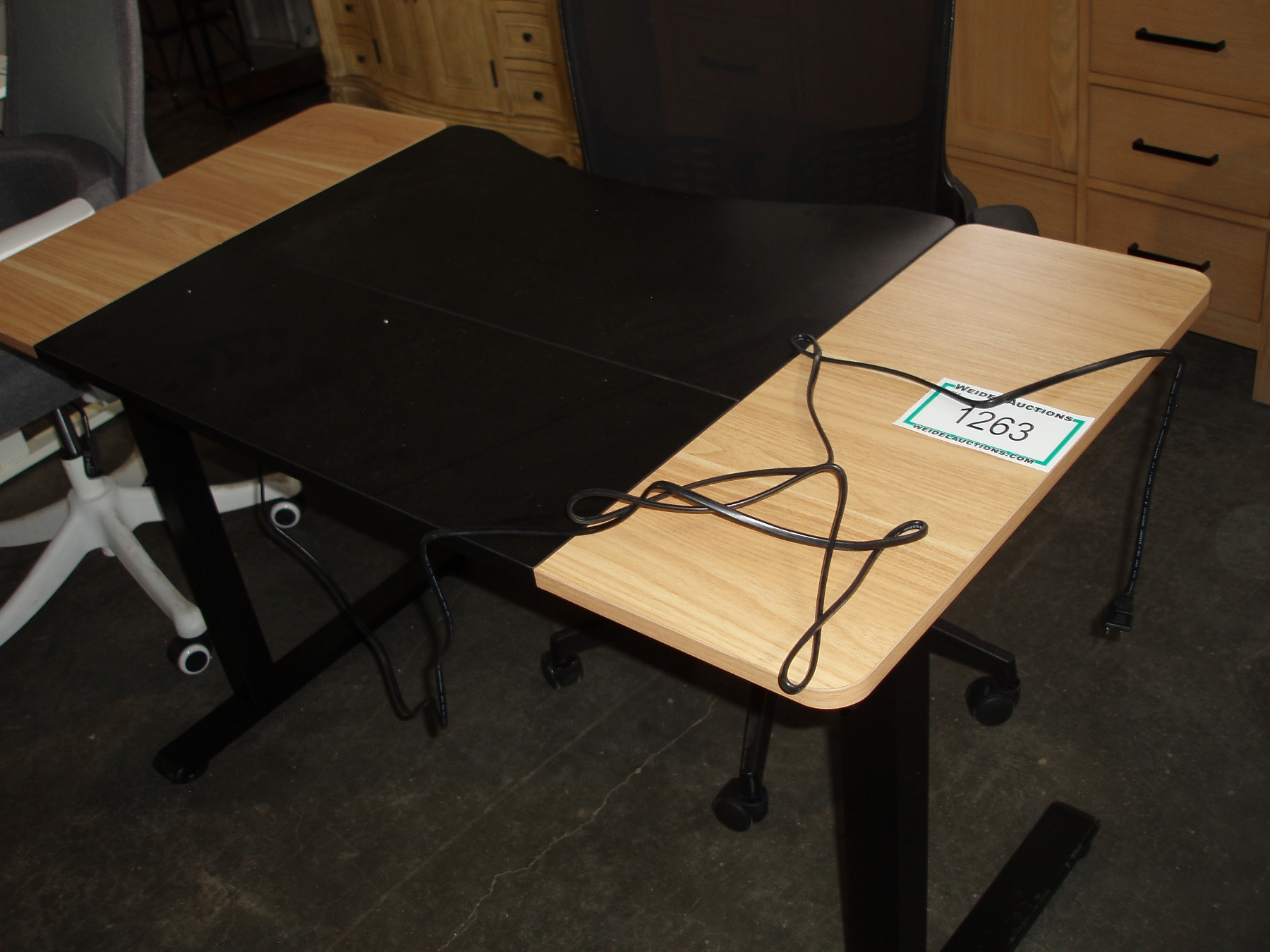 Height Power Adjustable Standing Desk with wooden top and black legs