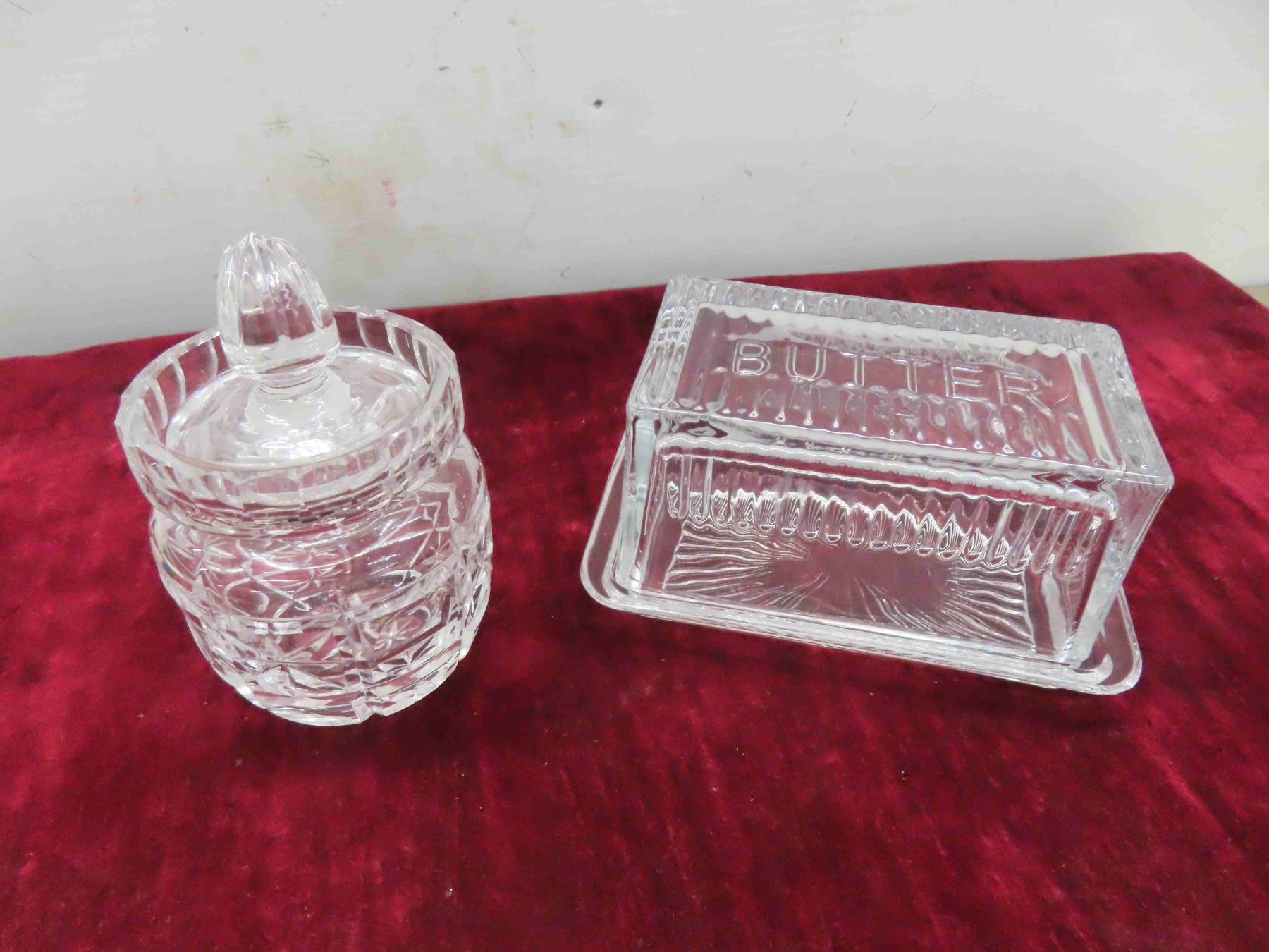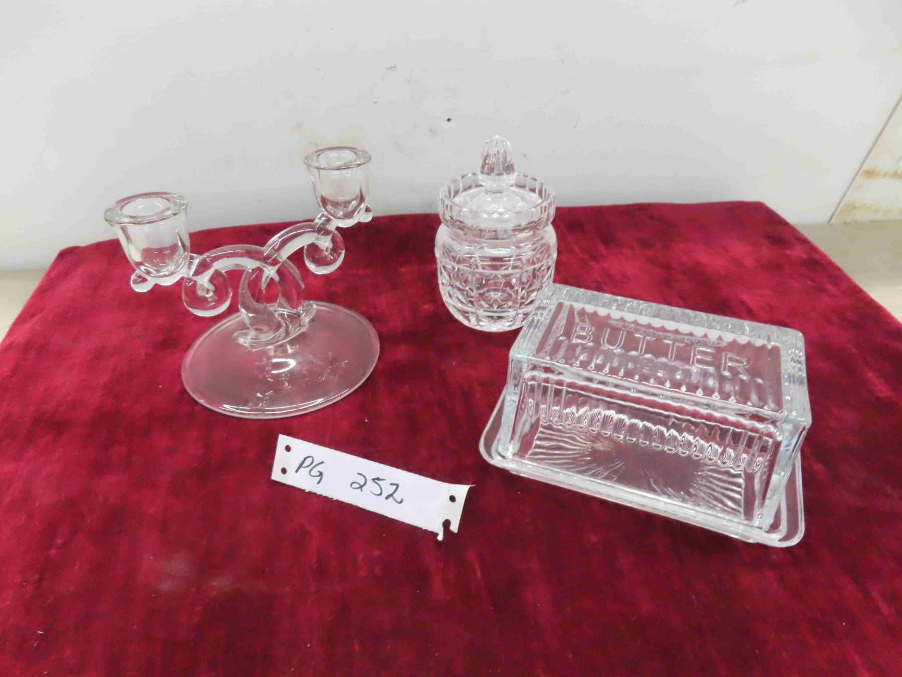 Heisey Lariat Hand Blown Double Candle Holder, Pattern 1540, Heavy Glass Crystal Intricate Hand Cut Jam/Honey/Condiment Jar with Lid,Glass Butter Dish. All Problem Free.
