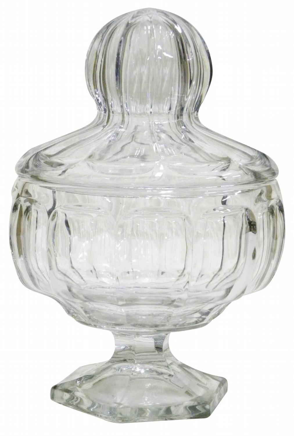Heisy fluted Pattern Glass Candy Jar w/lid. No chips or cracks. 6 1/2 inch diameter X 9 inches tall.