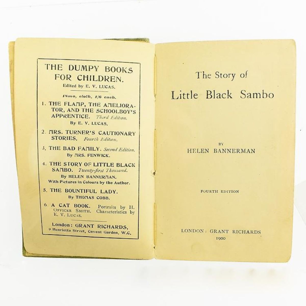 Item Overview Description: Title: The Story of Little Black Sambo Author: Helen Bannerman - Helen Bannerman was a Scottish author of children's books. She is best known for her first book, "Little Black Sambo." (Courtesy Wikipedia) Publisher: Grant Richards City: London Year: 1900 Printing Information: Other - see description Binding Style: Hardcover Pagination: 113 pages Width: 3" Height: 5" Book Details: This early printing of Helen Bannerman's classic and sometimes controversial children's story "Little Black Sambo" is bound by green cloth covered boards with the title emblazoned in black ink on the front cover and spine amidst a minimalist pattern. The text features numerous illustrations and the verso of each leaf is blank. By today's standards this is something of a problematic and racially charged tale, though "critics of the time observed that Bannerman presents one of the first black heroes in children's literature and regarded the book as positively portraying black characters in both the text and pictures, especially in comparison to the more negative books of that era that depicted blacks as simple and uncivilised." [Courtesy Wikipedia] Condition / Notes: This text shows some typical indications of age and wear including some light toning, rubbing, and soiling on its boards. There is a partial crack in the front hinge though the pages remain solid and intact. It appears that the back hinge has been neatly repaired at some point. There is a handwritten note in pencil on the verso of one page. Some light toning is visible on the pages though the text and illustrations remain clear, bright, and legible. - 10393-050518-IN-02126