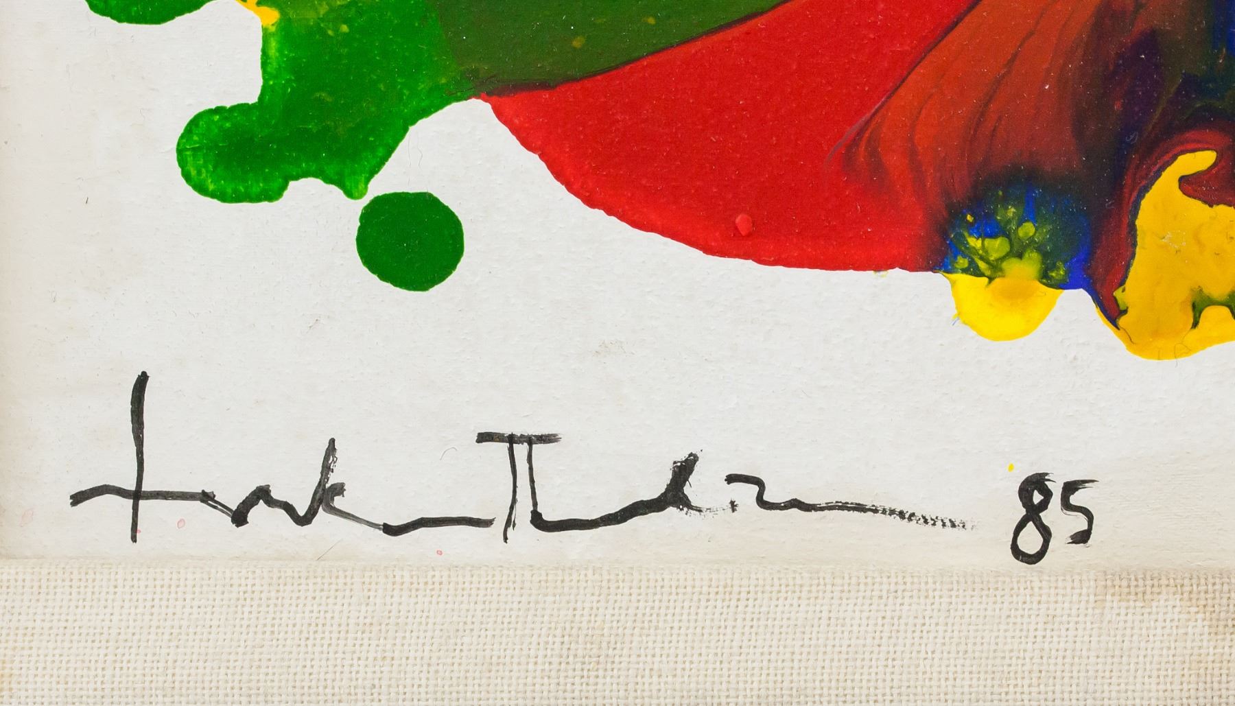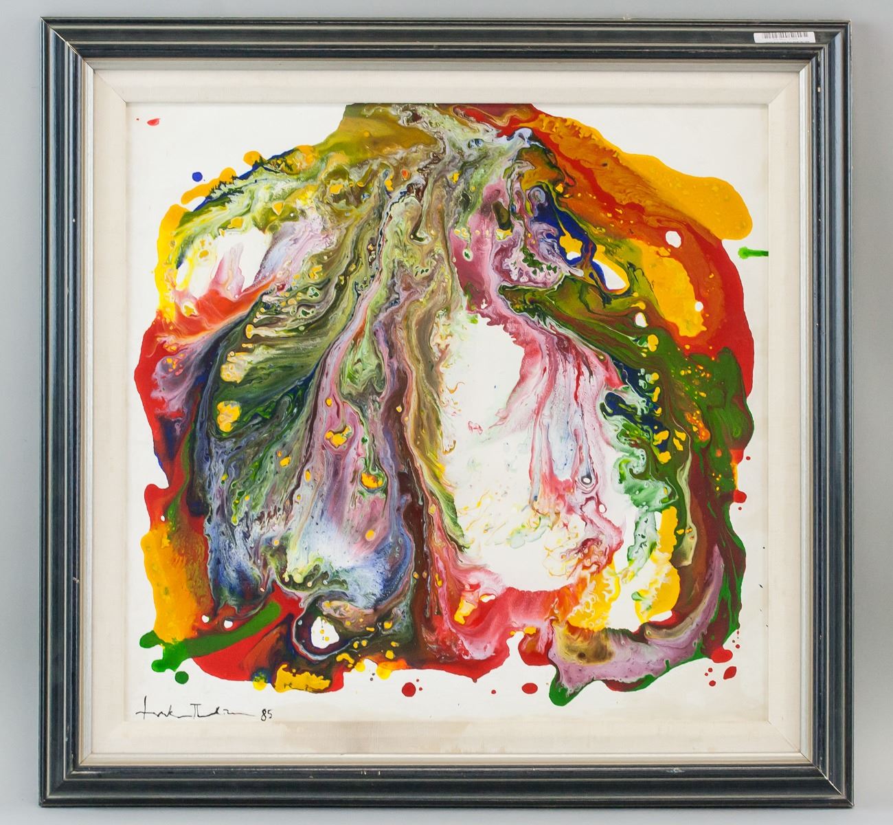 Oil on canvas, framed. Featuring abstract expressionist composition. Signed "Frankenthaler" in the bottom left corner with "85" inscribed to the right of the signature. Attributed to Helen Frankenthaler (1928-2011, American). 44 x 46 cm (17.5 x 18 in), Frame: 58 x 60 cm (22.75 x 23.5 in). Provenance: This lot carries limited provenance from a Southern Ontario estate