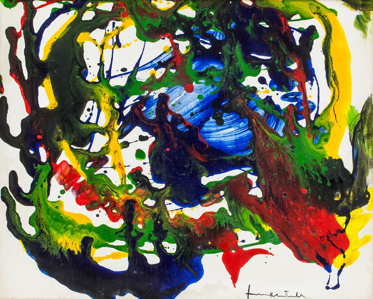 Oil on canvas, framed. Featuring an abstract expressionist composition. Signed Frankenthaler on the lower right corner. Attributed to Helen Frankenthaler (1928-2011, American). 41 x 51 cm (16 x 20 inches). Framed size: 48 x 58 cm (19 x 23 inches). PROVENANCE: This item has limited provenance from a Southern Ontario estate