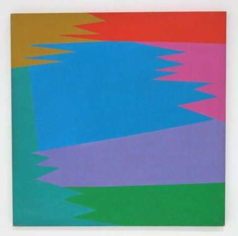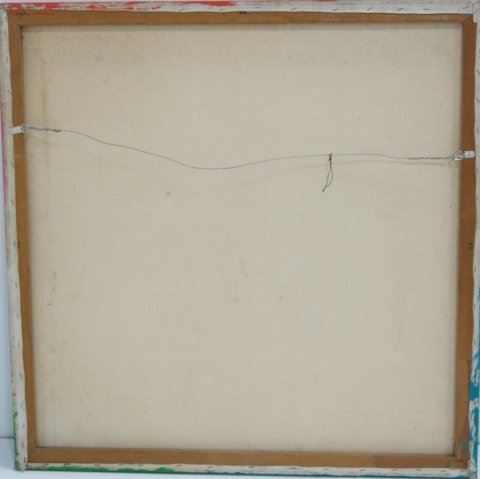 Acrylic on canvas. Color theory abstract. Unframed. Signed & titled rear. Ca. 1970. Approx. 48" x 48". Good condition.