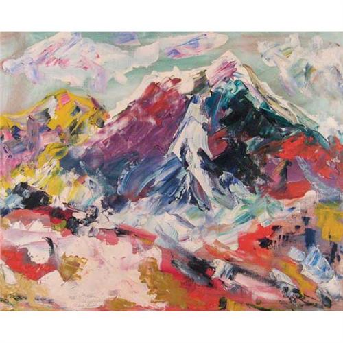 Helen Huff, Oil on Canvas, Abstract Mountain Scene, Inscribed lower left: "To Charlie, with appreciation, Helen Huff, 16" x 20", Signed lower left '60.