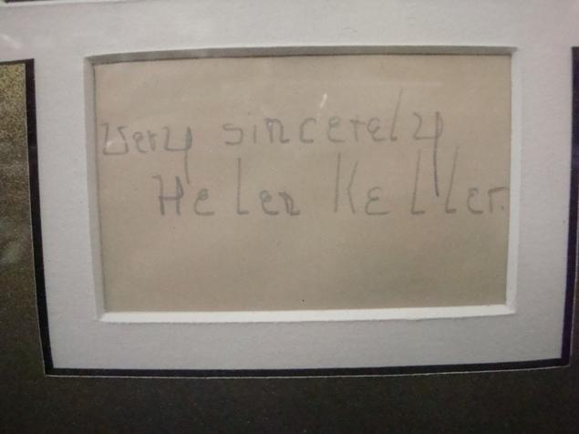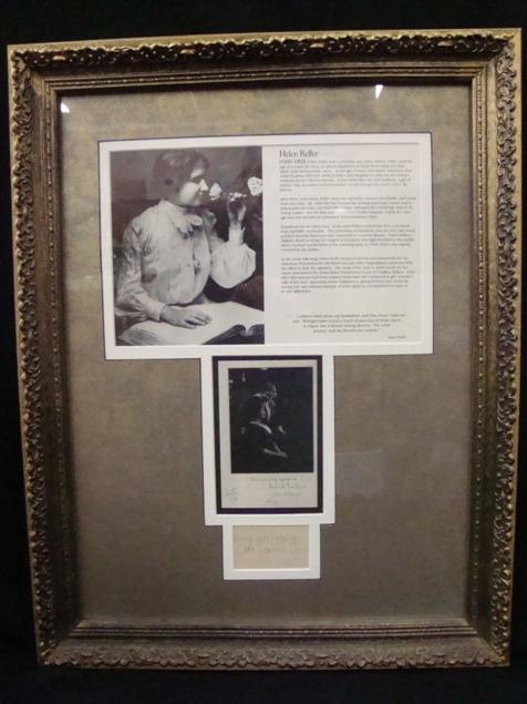 Rarely seen Helen Keller pencil printed signature, nicely framed with a photo and biography. Professionally framed 21x27".