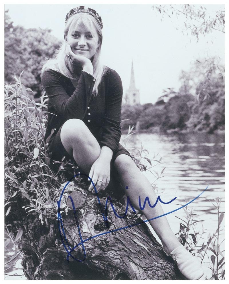 Laserprint 8 x 10 photo of a young Mirren sitting by a river, signed in-person in blue felt tip. In fine condition.