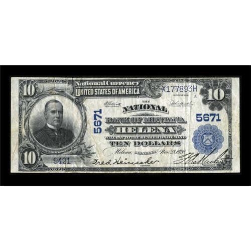 <B>Helena, MT</B></I> - $10 1902 Plain Back Fr. 633 <B>The NB of Montana</B></I> Ch. # 5671<BR> Bold engraved signatures add to the eye appeal of this lightly circulated piece, which features fresh white paper and a bold blue overprint. <B>Very Fine.</B></I><BR><BR><b>Shipping:</b> Coins & Currency (<a target="_blank" href="http://www.heritageauctions.com/common/shipping.php">view shipping information</a>)