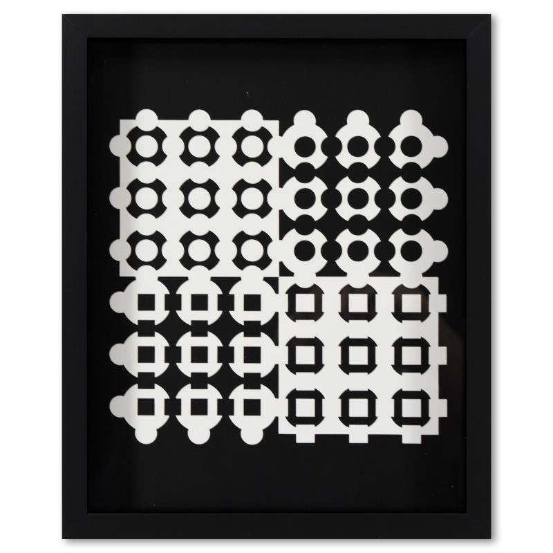 "Helion de la serie Corpusculaires" is a heliogravure print on paper, published in 1973, by Victor Vasarely (1908-1997). This piece comes custom framed, with a letter of authenticity and with a 1976 Vasarely paperback. Measures approx. 12.5" x 15" (frame), 10" x 12" (image).