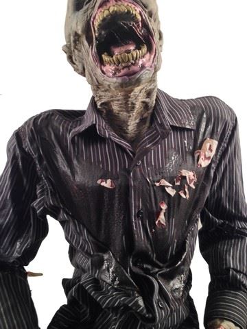 Screen used Rising Zombie prop. When plugged in it rises. It is chained at the hands and is bloody. Shirt is soaked in blood and it has as a giant mouth, big teeth and gums.(28x18)